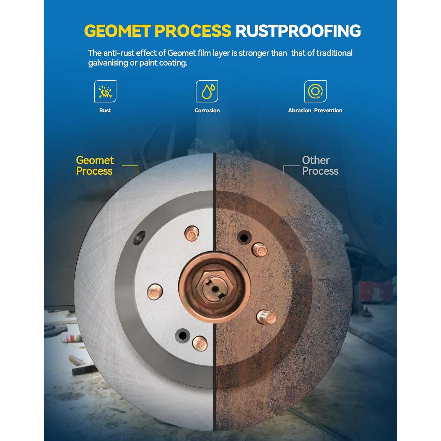 [Specification]: Mounting Bolt Hole Quantity: 5; Outside Diameter(IN): 10.7; Discard Thickness(IN): 0.35; G3000 metallurgy and metallic coating of brake discs can effectively prevent rust and corrosion, extending the lifespan.