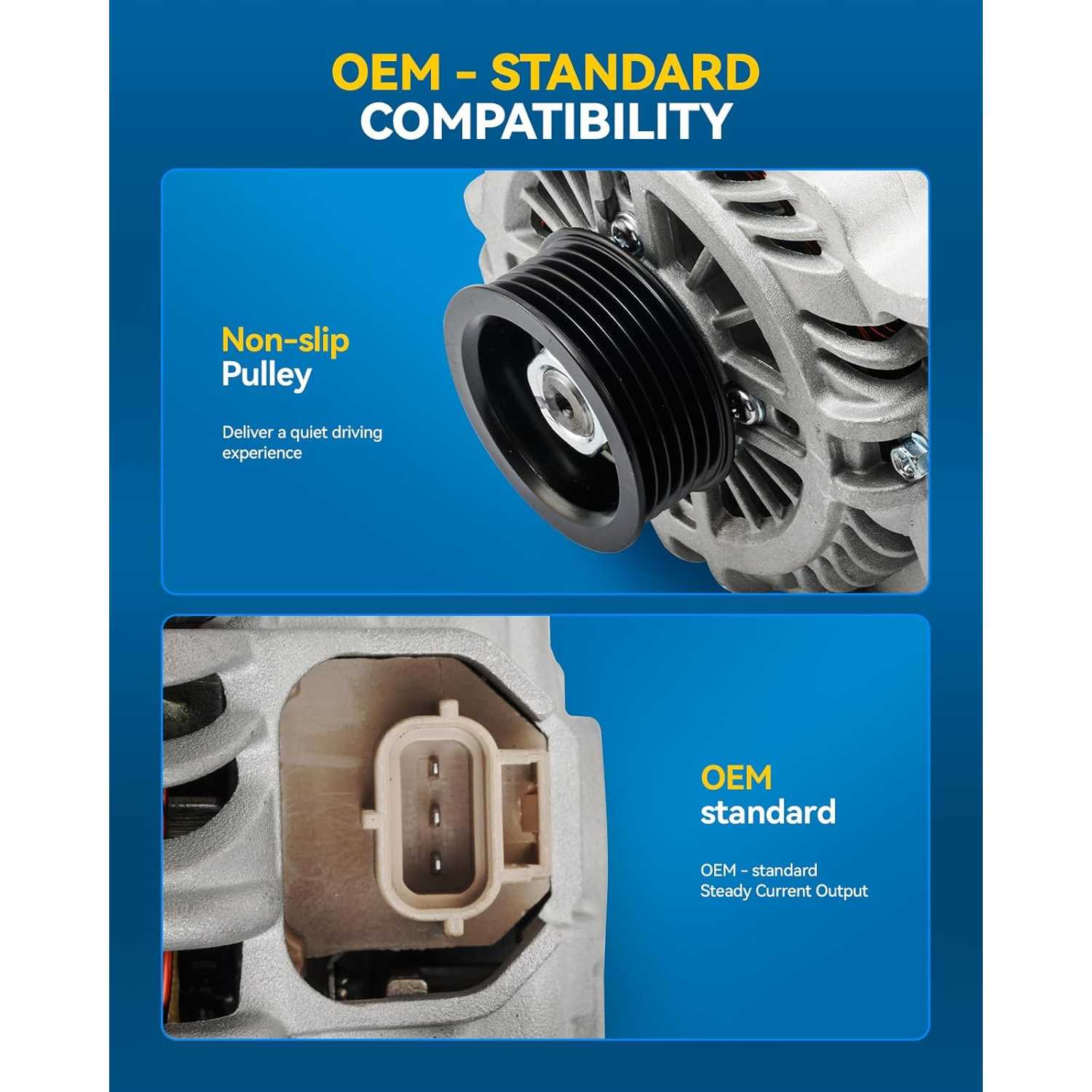 Alternators compatible with: Ford; for2011-2015 2021 350 Super Duty, 2009-2014 250-e, 2009-2014 150-e, 2009-2010 2016-2019 350 Super Duty 6.8L, 2009-2010 350 Super Duty 5.4L, 2009-2010 2016-2019 E-450 Super Duty 6.8L, 2011-2015 2021 E-450 Super Duty, 2009-2010 E-450 Super Duty 5.4L
