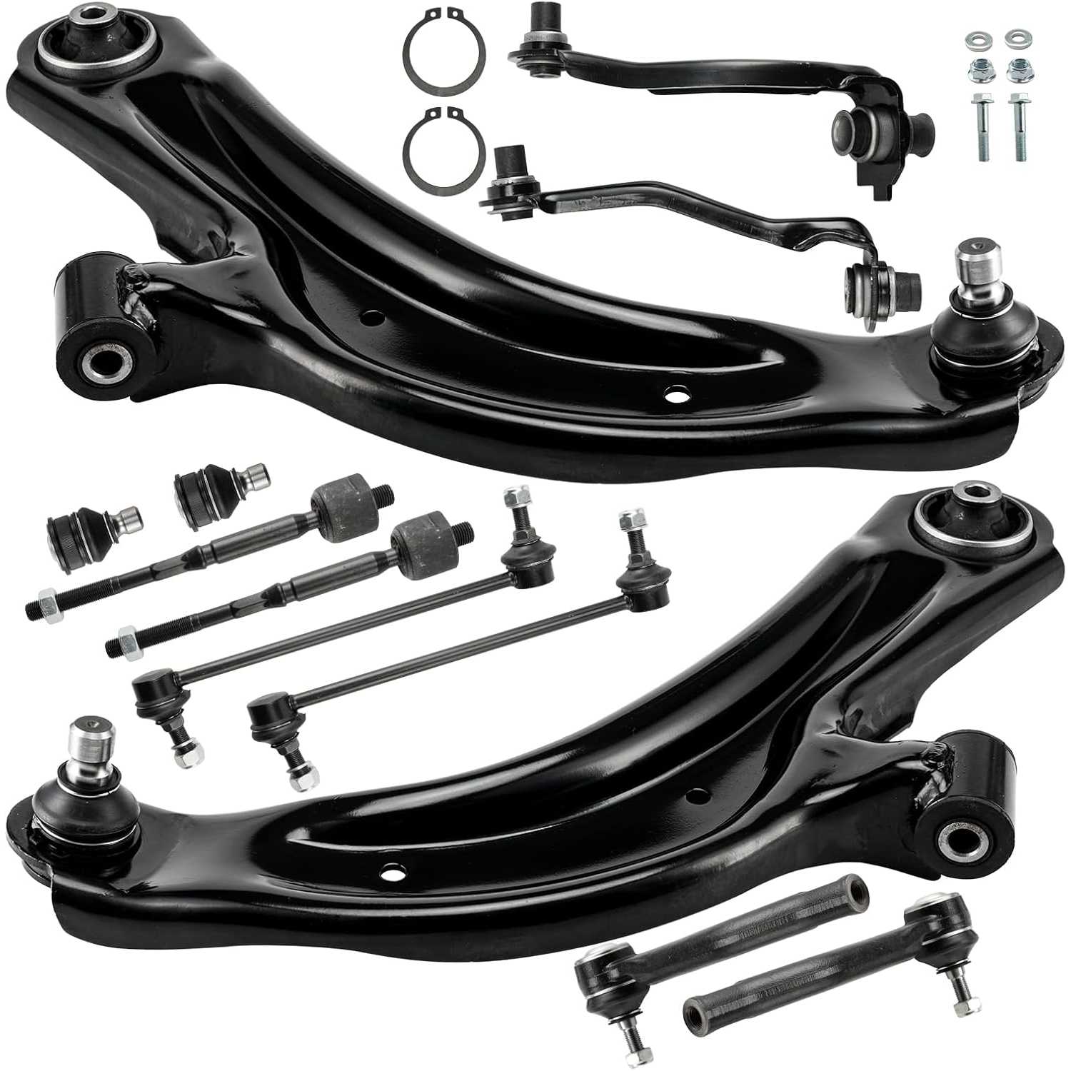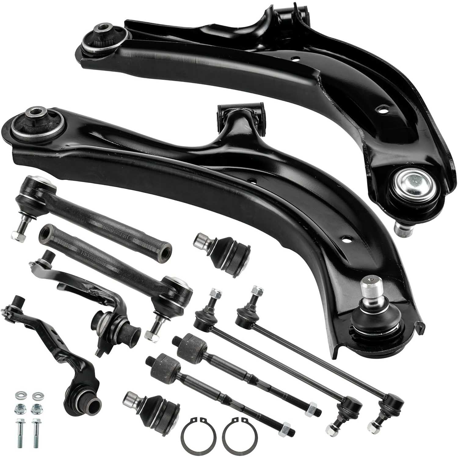 Kit Includes: 2x Front Lower Control Arms w/Ball Joints, 2x Front Upper Control Arms, 2x Front Sway Bar End Links, 2x Front Lower Ball Joints, 2x Front Outer Tie Rods, 2x Front Inner Tie Rod End Links