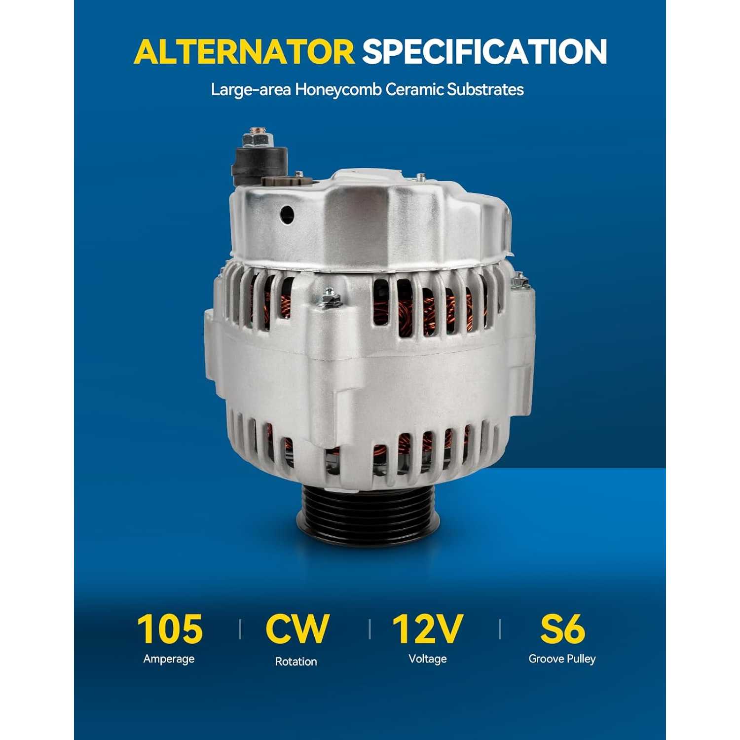 Automotive alternator specifications: Amperage Rating -105 Amp,Voltage -12 Volt,Groove Pulley-CW,Rotation-S6Design-IR/IF,Plug Clock-