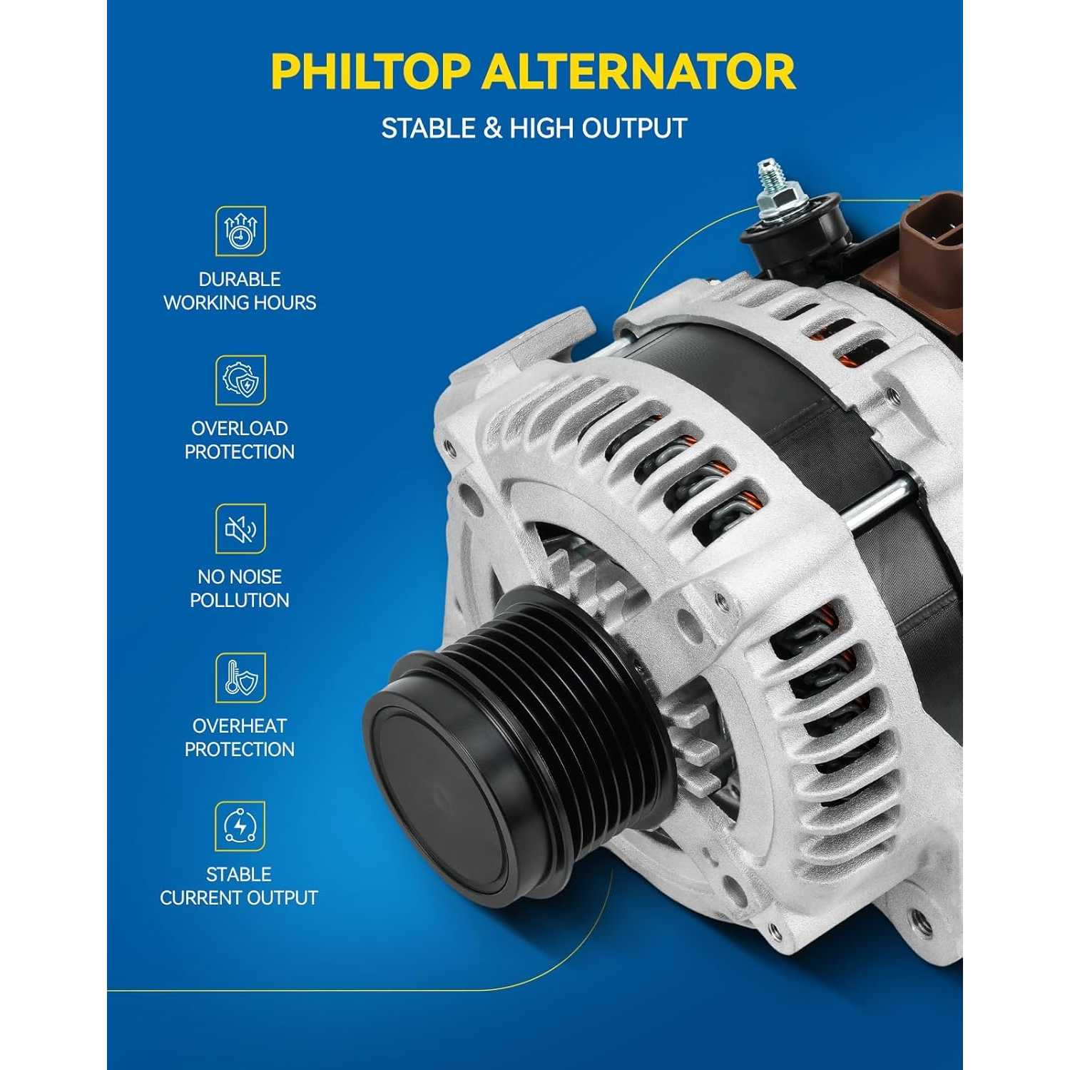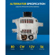 Automotive alternator specifications: Amperage Rating -80 Amp,Voltage -12 Volt,Groove Pulley-CW,Rotation-S6Design-IR/IF,Plug Clock-