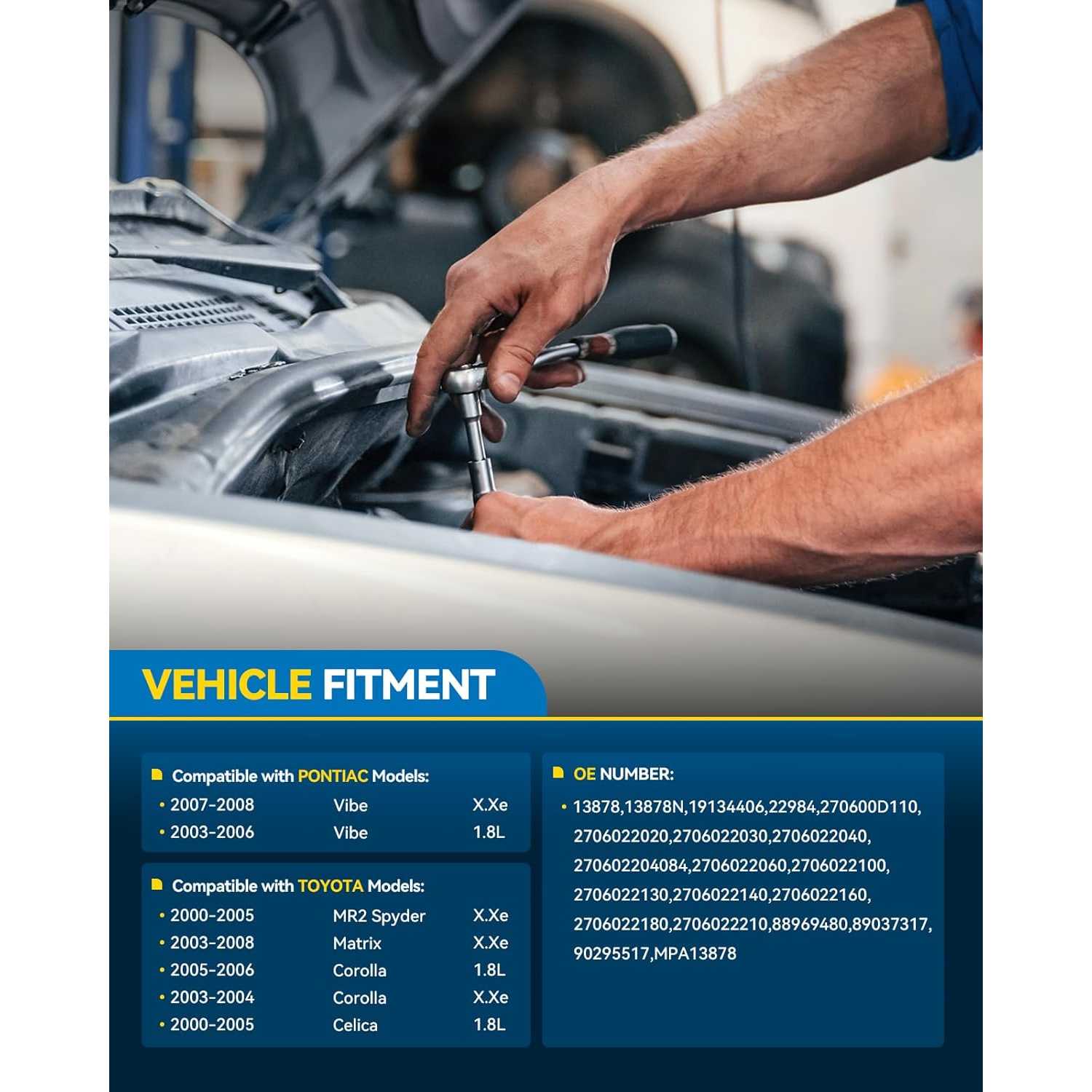 Alternators compatible with: Toyota, Pontiac; for2003-2004 2007-2008 Corolla, 2005-2006 Corolla 1.8L, 2003-2008 Matrix, 2003-2006 Vibe 1.8L, 2000-2005 Celica 1.8L, 2007-2008 Vibe, 2000-2005 MR2 Spyder