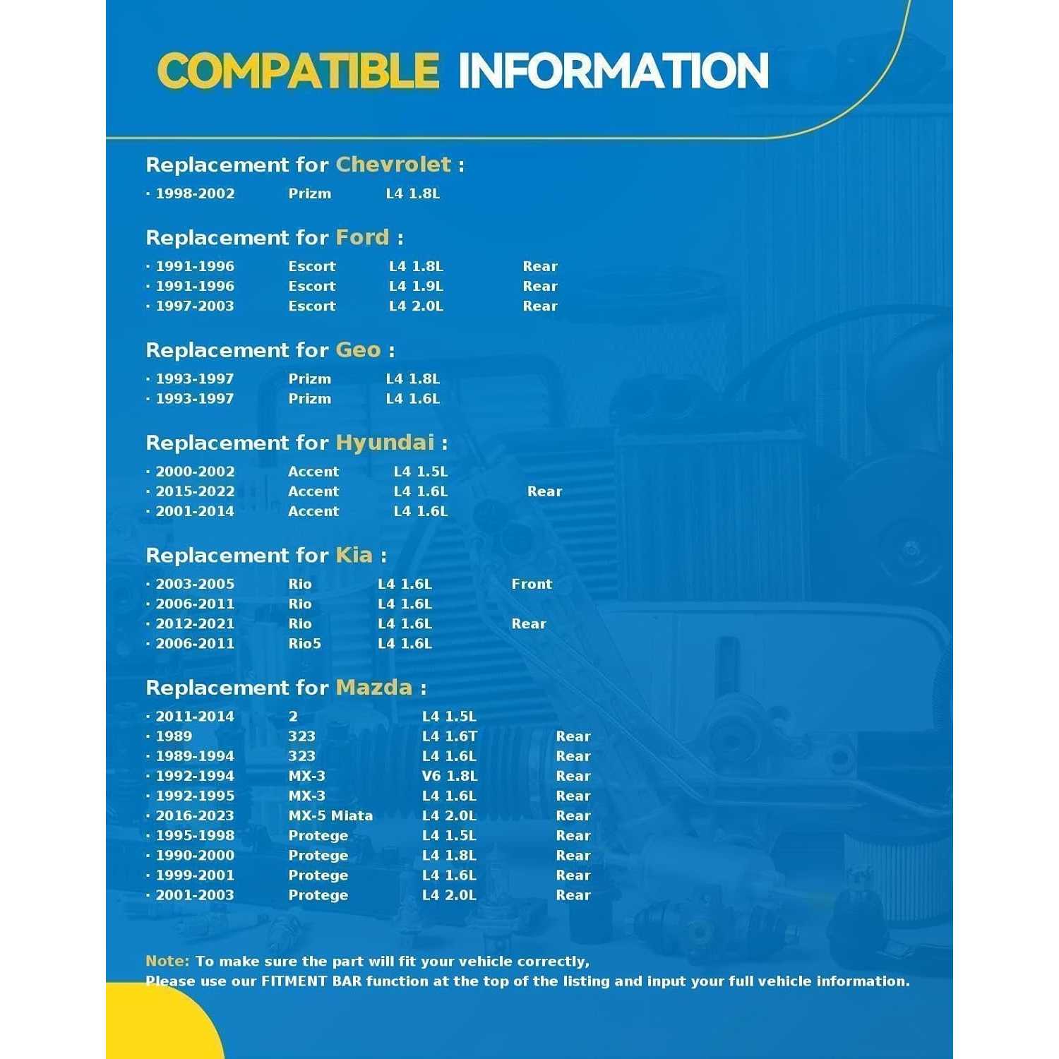 [Vehicle Application] --- The 4x100 Wheel Spacer set replacement for 2000-2022 Hyundai Accent; 2003-2021 Kia Rio; 2006-2020 Toy-ota Yaris; 1988-2002 Toy-ota Corolla; 1990-2003 Mazda Protege; 1991-2003 Escort; 1991-1999 Mercury Tracer; 2016-2023 Mazda MX-5 Miata; 2012-2019 Toy-ota Prius C; 1989-1995 Mazda 323; 2000-2005 Toy-ota Echo; 2006-2011 Kia Rio5; 1998-2002 Prizm; 1992-1996 Mazda MX-3; 2006-2010 Do-dge Attitude; 1993-1997 Geo Prizm; 2011-2014 Mazda 2; 2012-2015 Sci-on iQ