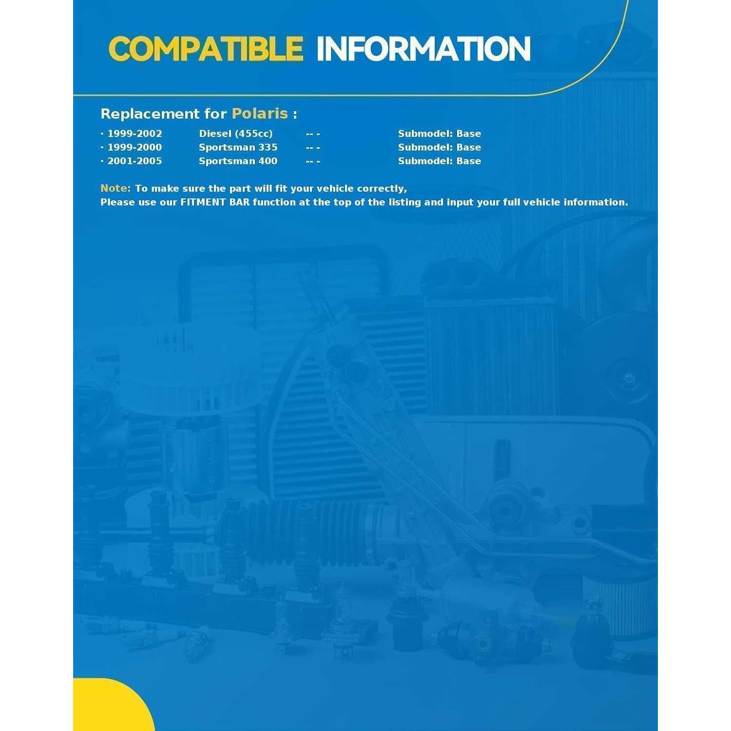 [Vehicle Application] --- The 4x110 Wheel Spacer set replacement for 2001-2005 Sportsman 400 Base; 1999-2000 Sportsman 335 Base; 1999-2002 Diesel (455cc) Base