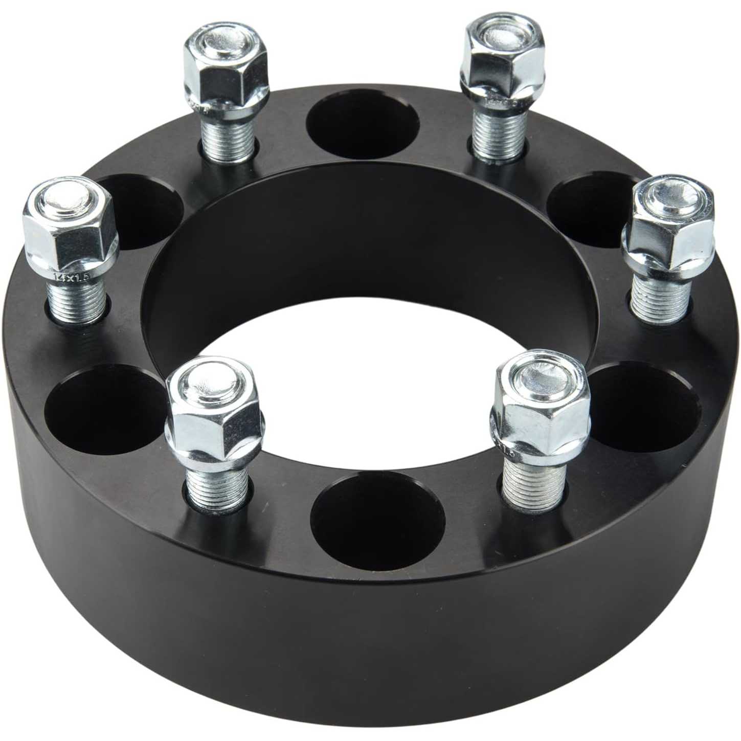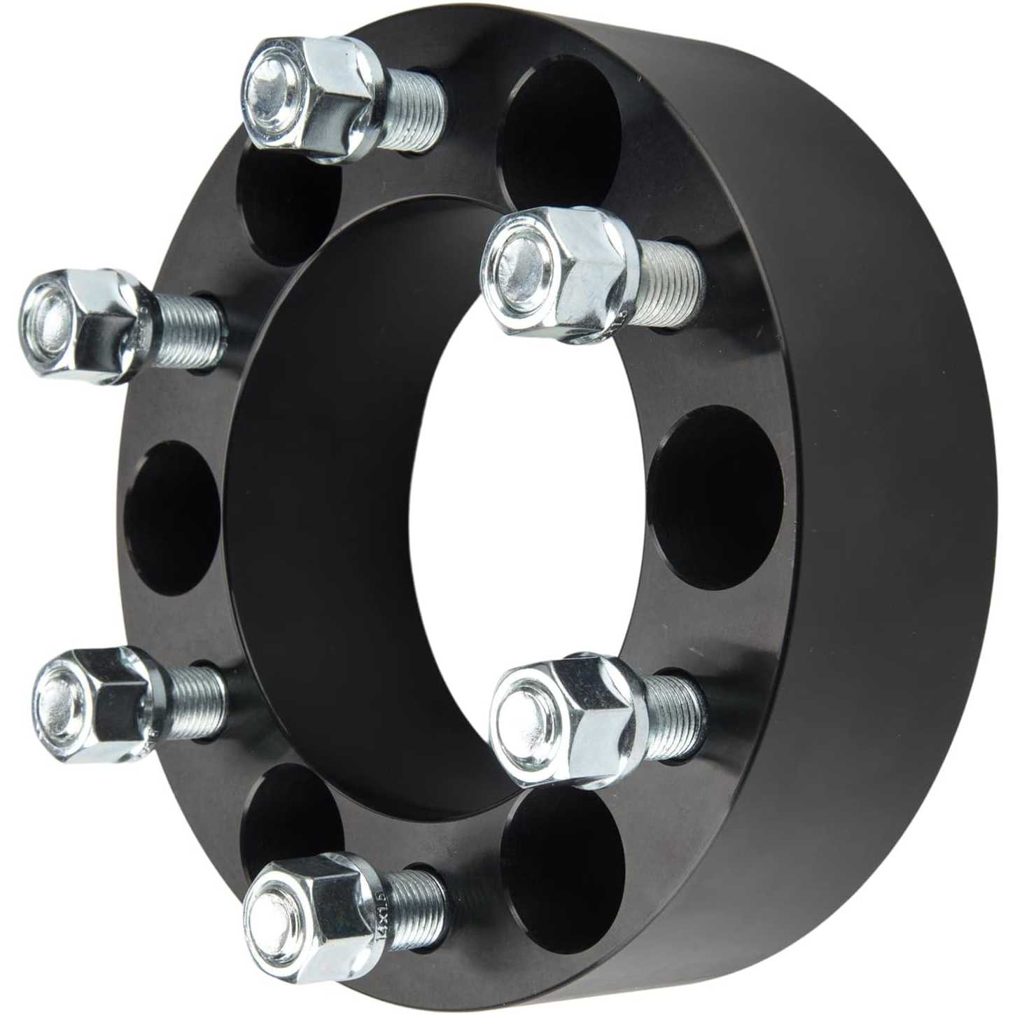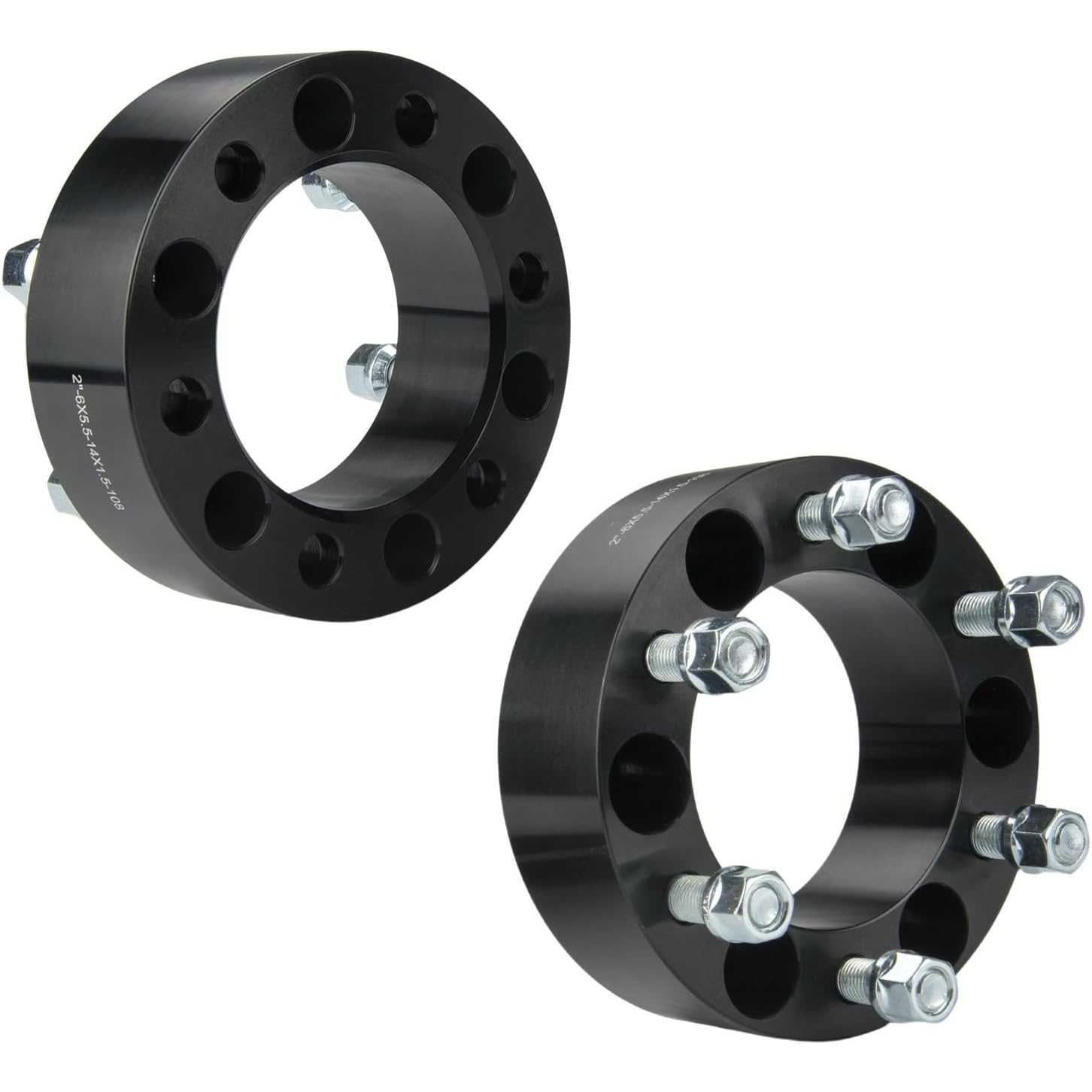 [Wheel Spacers Specification] --- Bolt Pattern: 6x5.5"(6x139.7mm) ; | Thickness: 2 inch(50.8mm) ; | Thread Pitch: M14x1.5 ; | Hub Bore: 108mm ; | Recommended torque: 85-90 ft/lbs. !!! Note: If the length of the vehicle bolts exceed the thickness of the wheel adapters, you need to cut the vehicle bolts