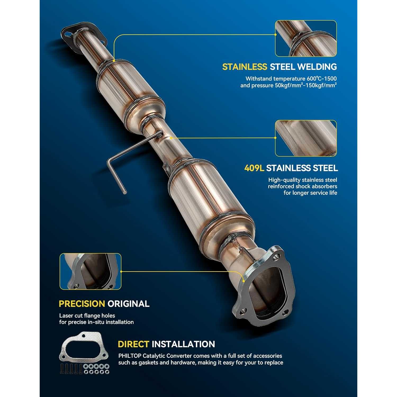 As a high-performance exhaust purification component, the PHILTOP catalytic converter stands out for its four core advantages: green emissions, stable performance, reliable quality and long life, fully meeting the practical needs of vehicle exhaust treatment and power output.