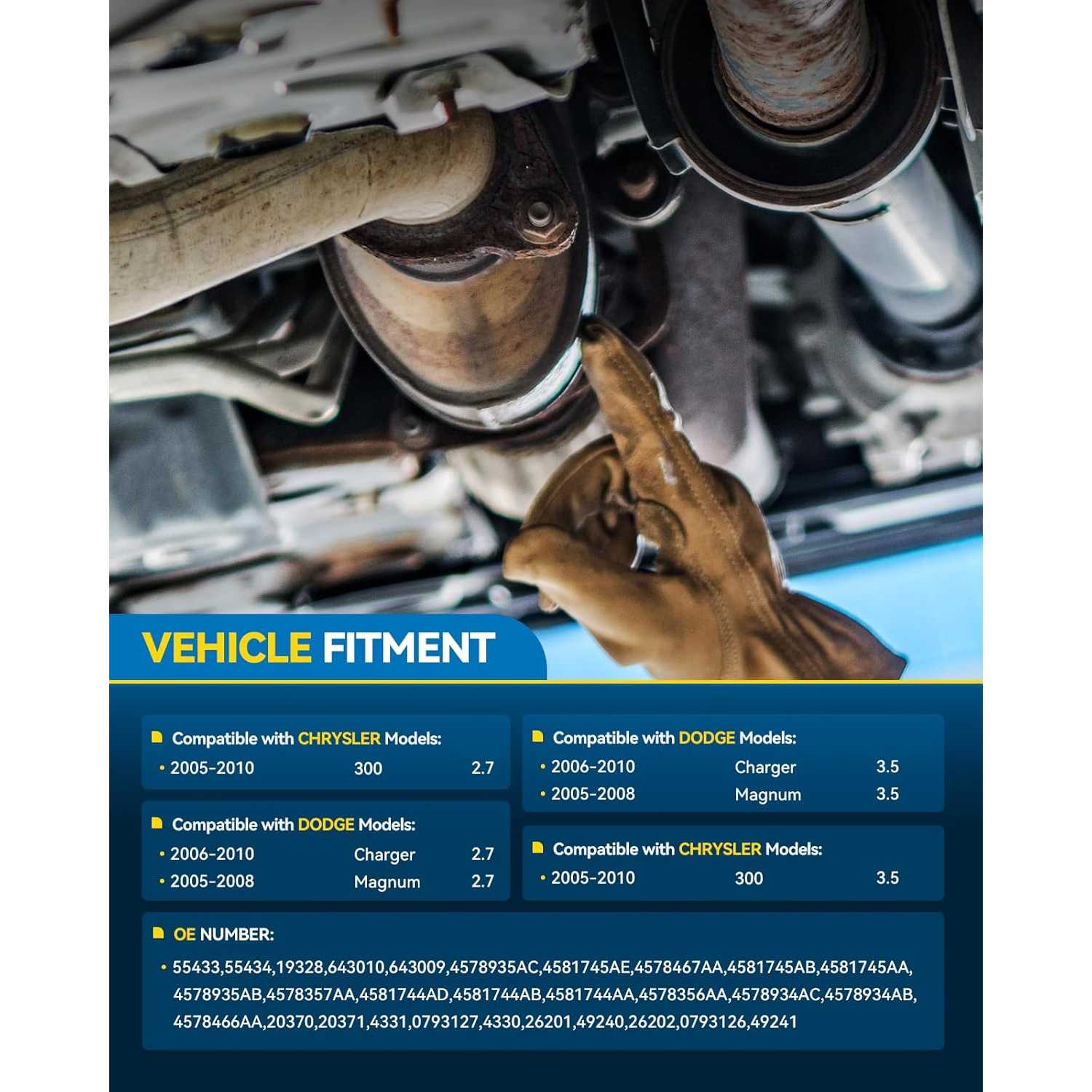 [Fitment] --- PHILTOP Catalytic Convertor Compatible with 2005-2010 300 2.7/3.5L V6 RWD, 2006-2010 Charger 2.7/3.5L V6 RWD, 2005-2008 Magnum 2.7/3.5L V6 RWD, (Not fit 4WD models).Standard OEM Specification: Catalytic Converter OEM Part Number#19329/19328