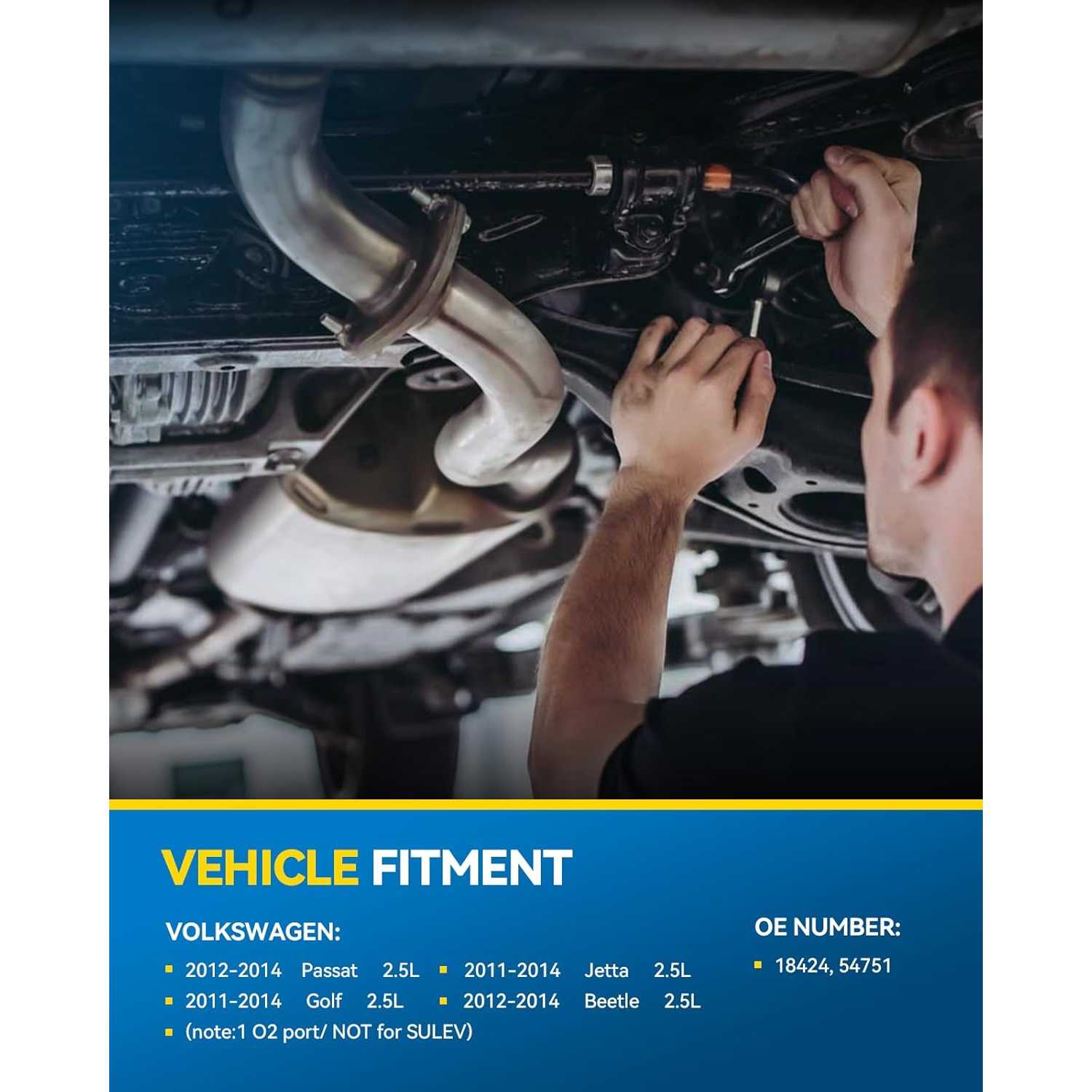 [Fitment] --- Catalytic Convertor Compatible with 2011-2014 Jetta/Golf 2.5L CBTA, 2012-2014 Passat/Beetle 2.5L CBTA, (1 O2 port/ NOT for SULEV)