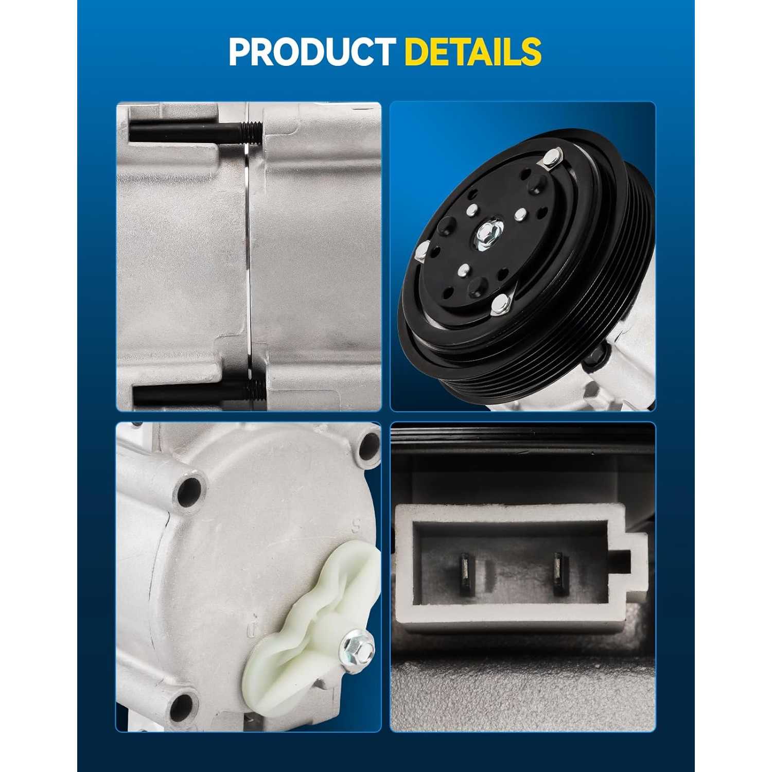 Ensures Fast Refrigeration And Defogging:①Oil Type:PAG 46; ②R-efrigerant Type:R12, R134a; ③Pulley Grooves:6;④Pulley Diameter:5.63 ; ⑤Compressor type:Fs10;⑥Pulley type:Multi-Groove Serpentine;⑦Clutch Included: Yes; ⑧Noise:<72 dB.Our air conditioning compressor supply Stable and Consistent Cooling,It ensures stable and consistent cooling throughout your drive.