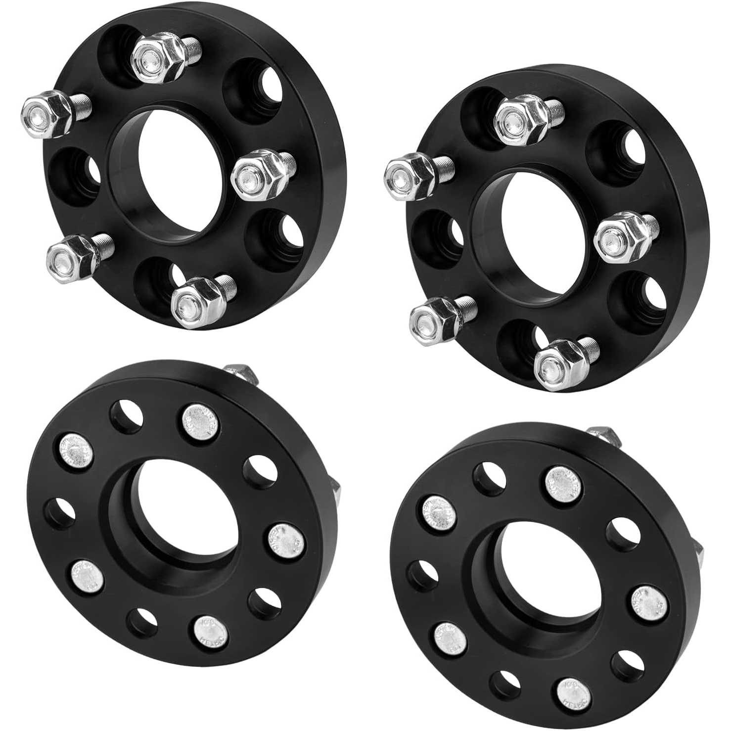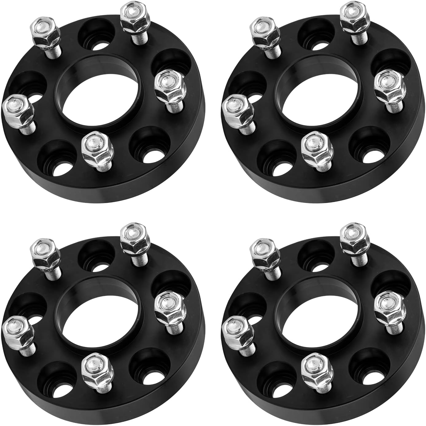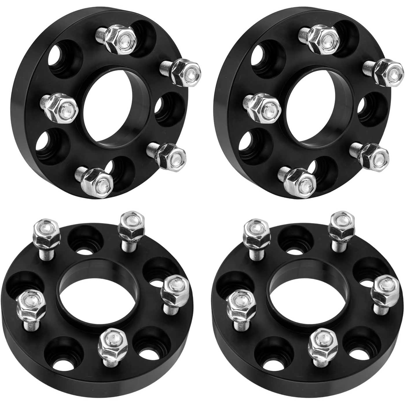 [Wheel Spacers Specification] --- Bolt Pattern: 5x4.5"(5x114.3mm) ; | Thickness: 1 inch(25mm) ; | Thread Pitch: M12x1.25 ; | Hub Bore: 66.1mm ; | Recommended torque: 70-80 ft/lbs. !!! Note: If the length of the vehicle bolts exceed the thickness of the wheel adapters, you need to cut the vehicle bolts