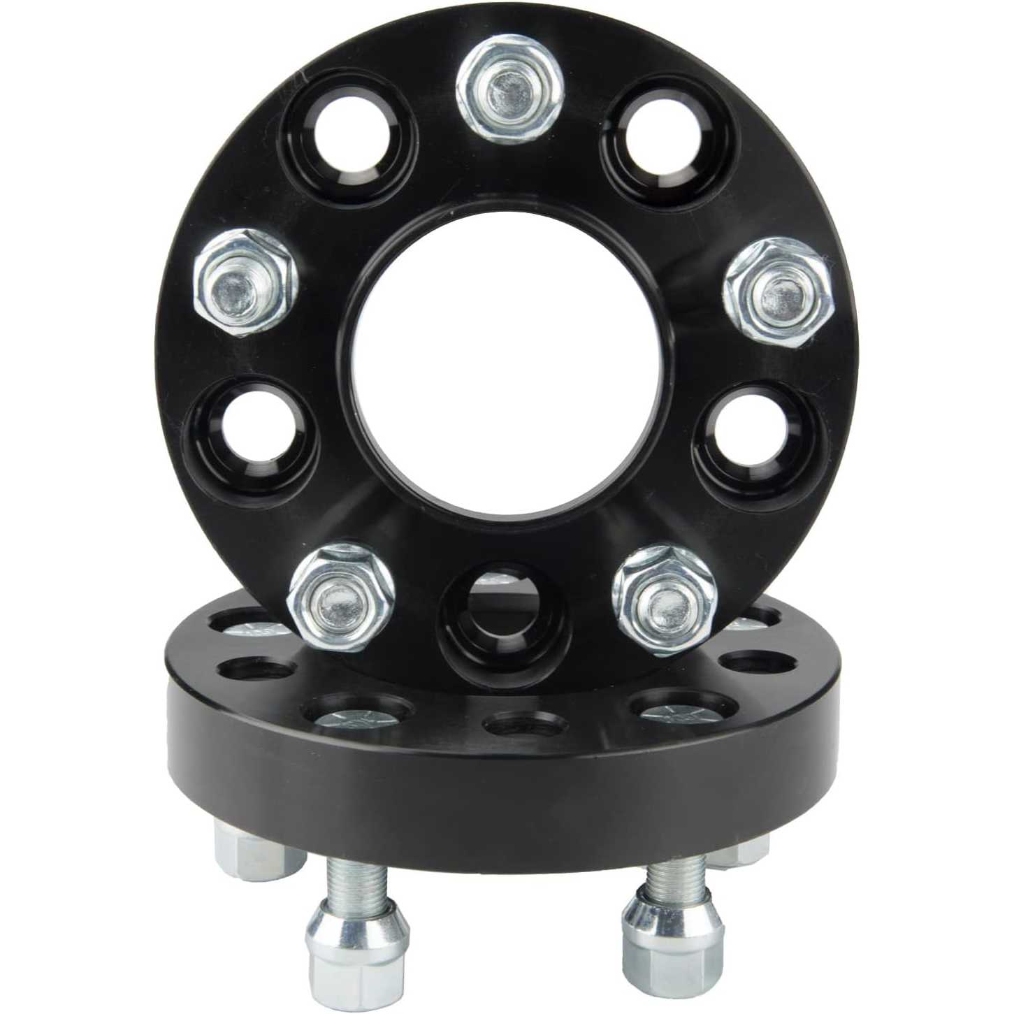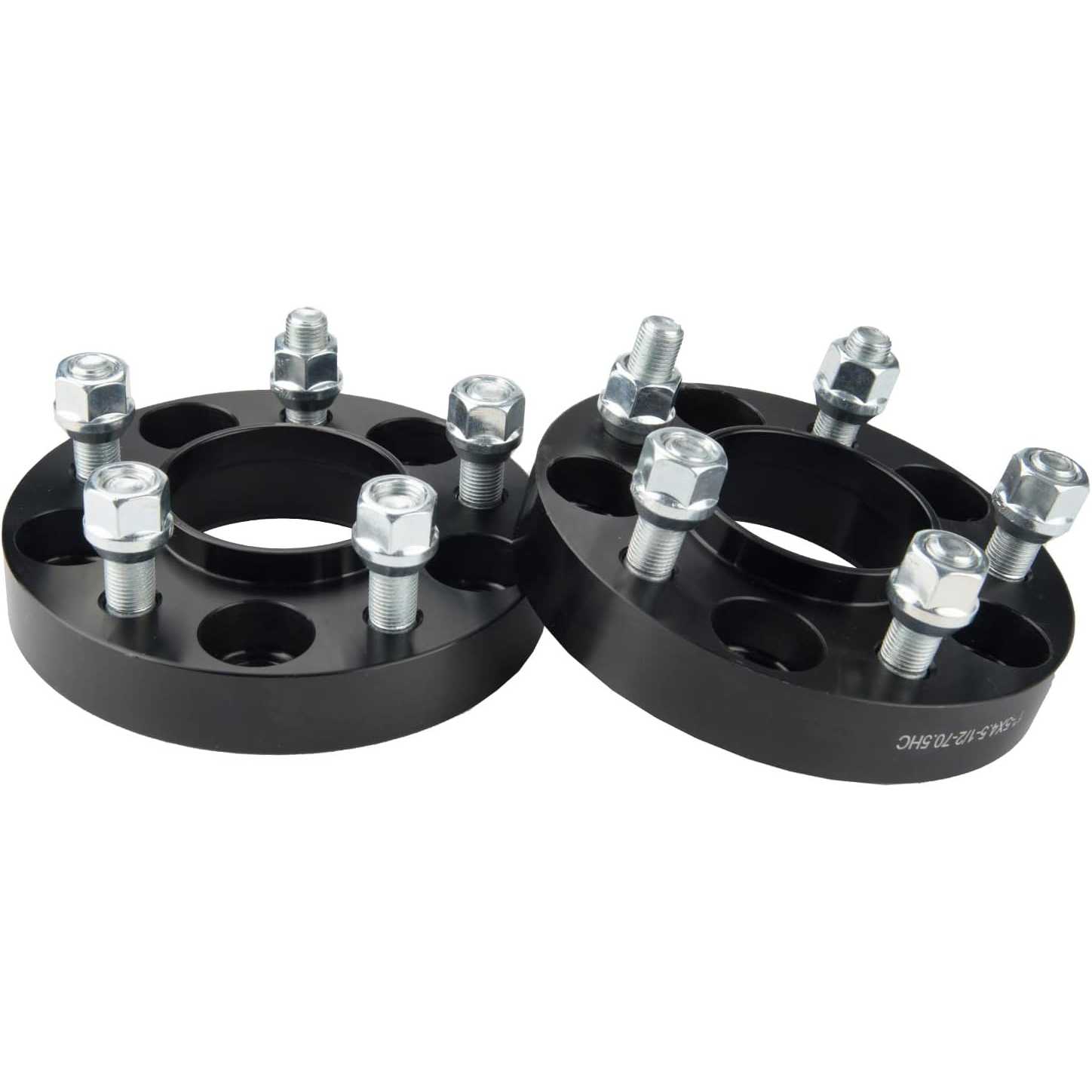 [Wheel Spacers Specification] --- Bolt Pattern: 5x4.5"(5x114.3mm) ; | Thickness: 1 inch(25mm) ; | Thread Pitch: 1/2"x20 ; | Hub Bore: 70.5mm ; | Recommended torque: 75-85 ft/lbs. !!! Note: If the length of the vehicle bolts exceed the thickness of the wheel adapters, you need to cut the vehicle bolts