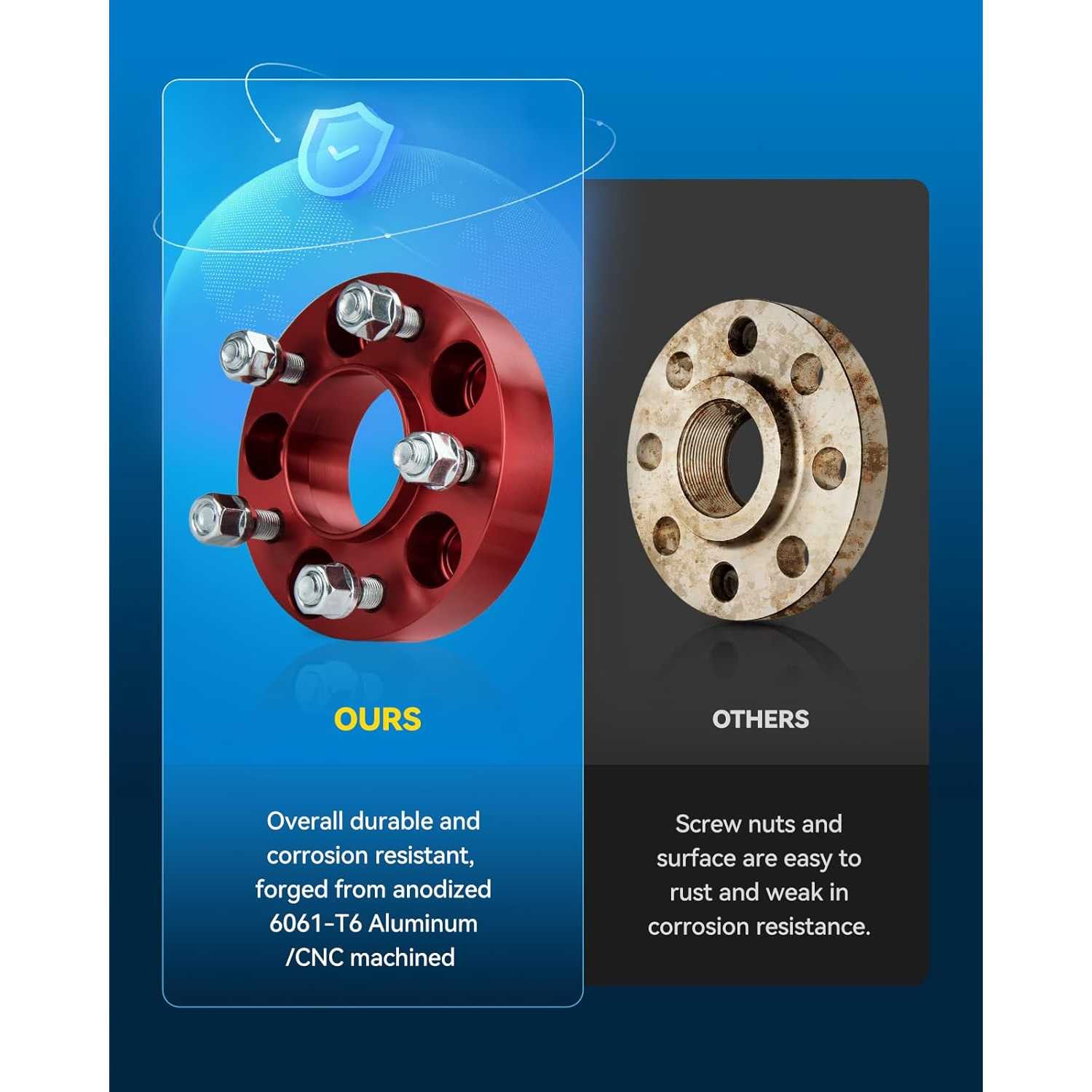 [Unsurpassed Quality] ---5x4.5 Wheel Spacer is truly forged from lightweight anodized 6061-T6 aircraft-grade aluminum alloy, the surface anodized coating can protect the metal surface from environmental erosion under extreme conditions. CNC precisely machined, with pre-installed heat treated 12.9 grade carbon steel studs, 7-10 times the corrosion resistance of similar products. The installation fit more better, so as to prevent wheel vibration and maintain the stock driving