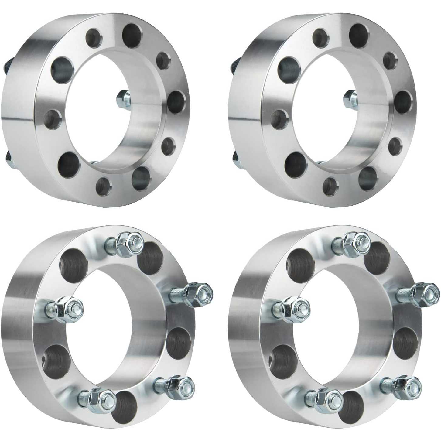 [Wheel Spacers Specification] --- Bolt Pattern: 5x5.5"(5x139.7mm) ; | Thickness: 2 inch(50.8mm) ; | Thread Pitch: 1/2"x20 ; | Hub Bore: 108mm ; | Recommended torque: 75-85 ft/lbs. !!! Note: If the length of the vehicle bolts exceed the thickness of the wheel adapters, you need to cut the vehicle bolts