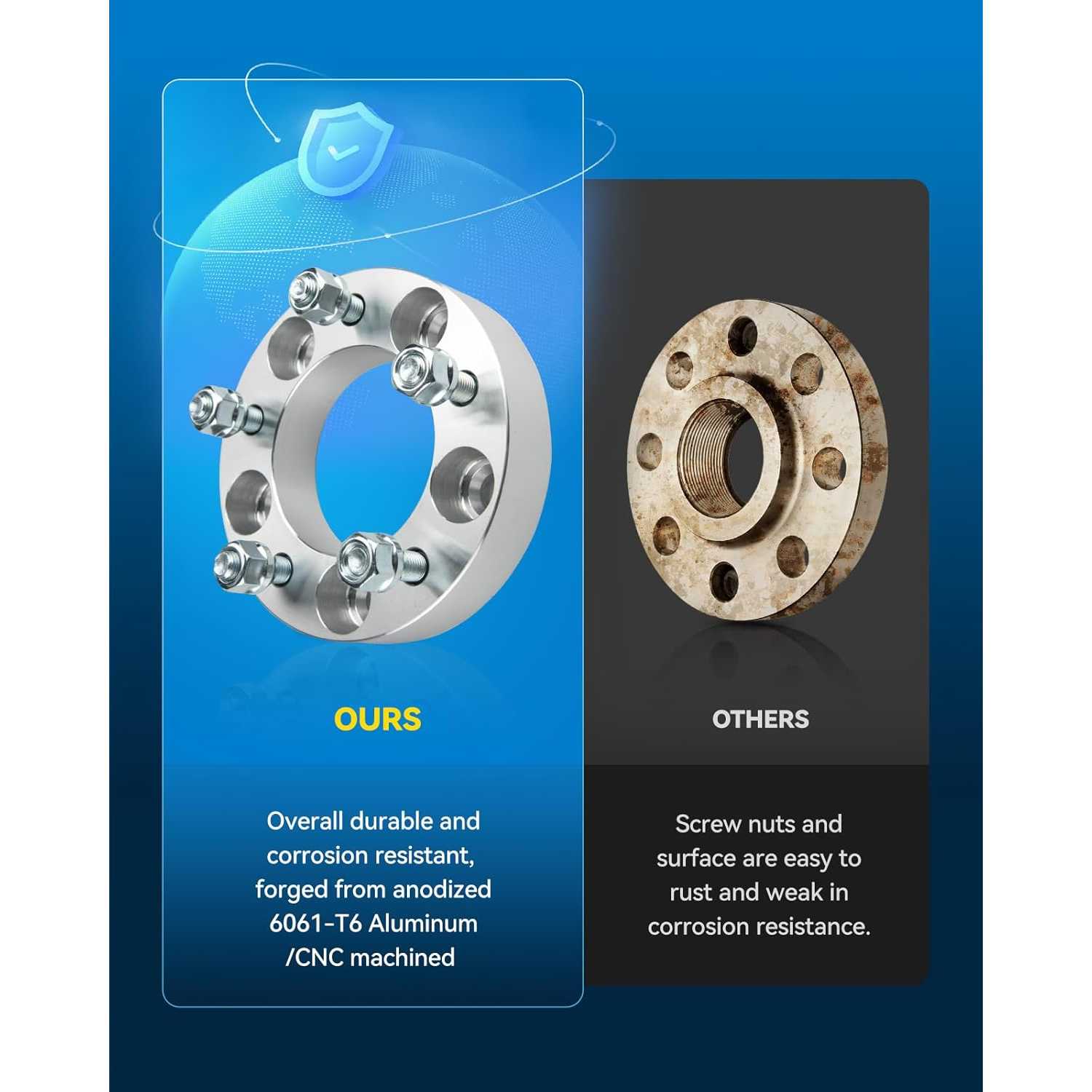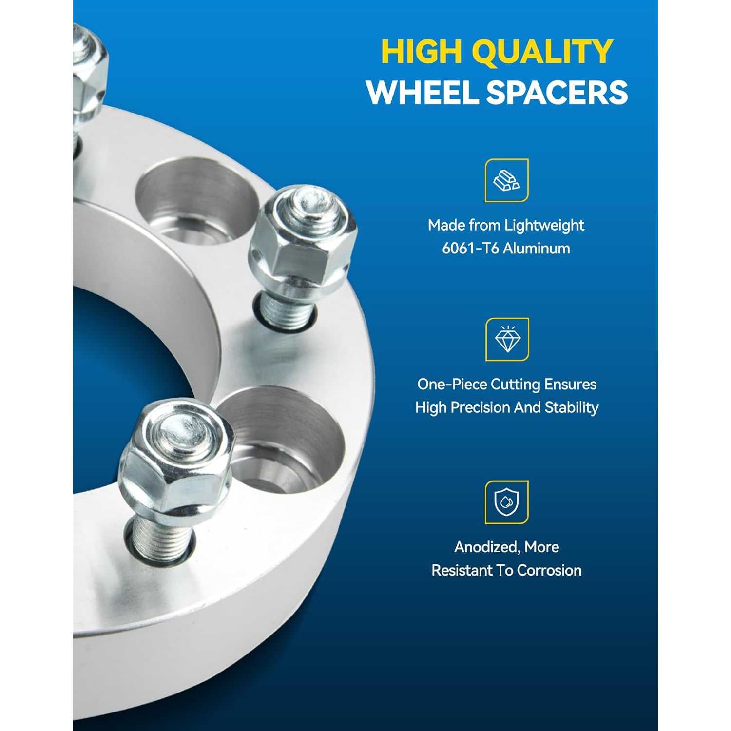 [Unsurpassed Quality] ---5x5.5 Wheel Spacer is truly forged from lightweight anodized 6061-T6 aircraft-grade aluminum alloy, the surface anodized coating can protect the metal surface from environmental erosion under extreme conditions. CNC precisely machined, with pre-installed heat treated 12.9 grade carbon steel studs, 7-10 times the corrosion resistance of similar products. The installation fit more better, so as to prevent wheel vibration and maintain the stock driving