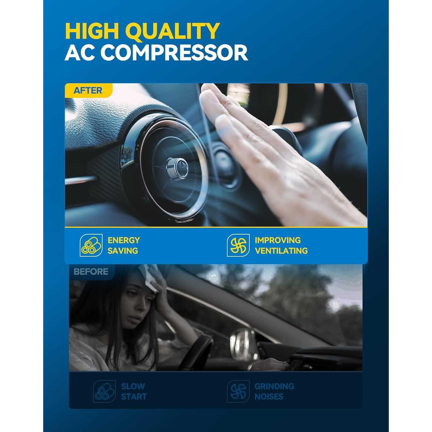 Low Noise & Low Fuel Consumption: AC compressor works excellent and has low noise with a better experience. With a lower load factor, low power will be input when driving at high speed, which increases fuel economy and makes operation smoothly.
