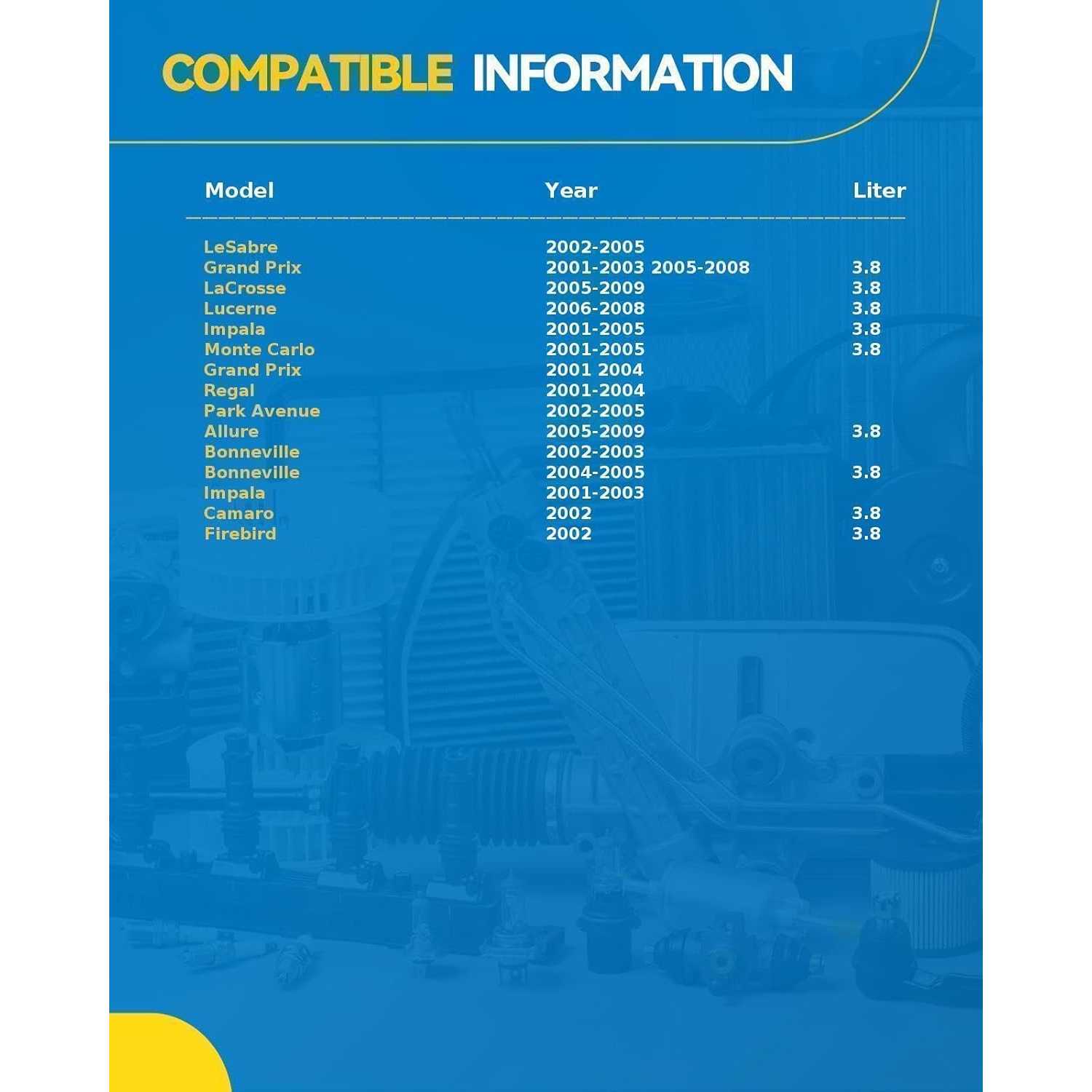 Fitment: This Automotive Replacement Starter compatible with LeSabre 1998-2005, Grand Prix 1998-2008, Impala 2000-2005, LaCrosse 2005-2009, Park Avenue 1998-2005, Regal 1998-2004, Monte Carlo 1998-2005, Bonneville 1998-2005, Camaro 1998-2002, Firebird 1998-2002, Intrigue 1998-1999, 88 1998-1998, Lumina 1998-1999, LSS 1998-1999
