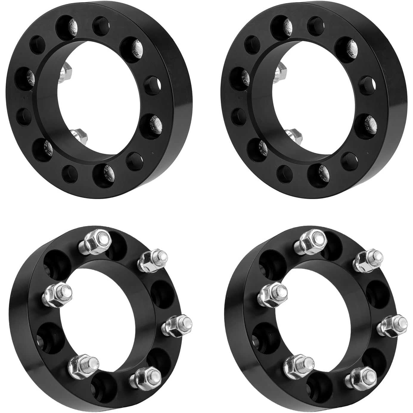 [Wheel Adapters Specification] --- Vehicle Bolt Pattern: 6x139.7mm(6x5.5") ; | Wheel Bolt Pattern: 6x135mm ; | Thickness: 1.5 inch(38mm) ; | Thread Pitch: M14x1.5 ; | Hub Bore: 108mm ; | Recommended torque: 85-90 ft/lbs. !!! Note: If the length of the vehicle bolts exceed the thickness of the wheel adapters, you need to cut the vehicle bolts