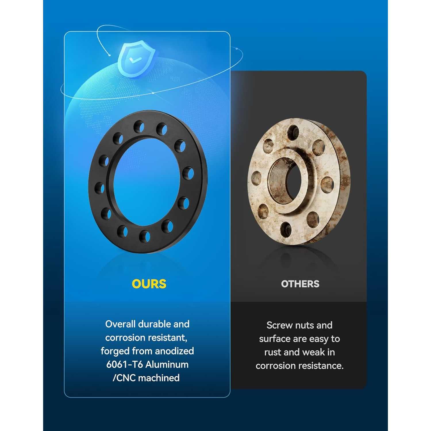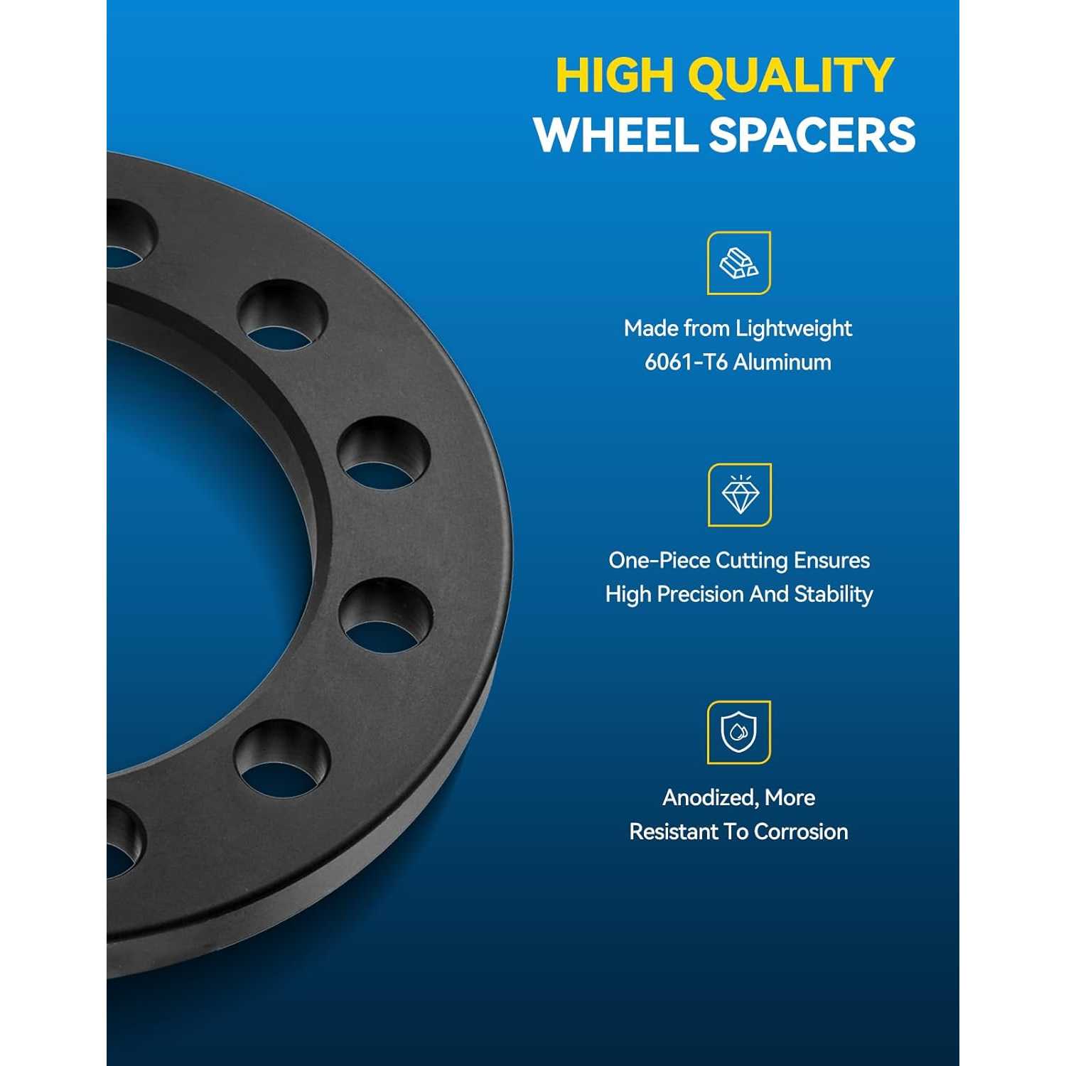 [Unsurpassed Quality] ---6x135 or 6x139.7 Wheel Spacer is truly forged from lightweight anodized 6061-T6 aircraft-grade aluminum alloy, the surface anodized coating can protect the metal surface from environmental erosion under extreme conditions. CNC precisely machined, 7-10 times the corrosion resistance of similar products. The installation fit more better, so as to prevent wheel vibration and maintain the stock driving