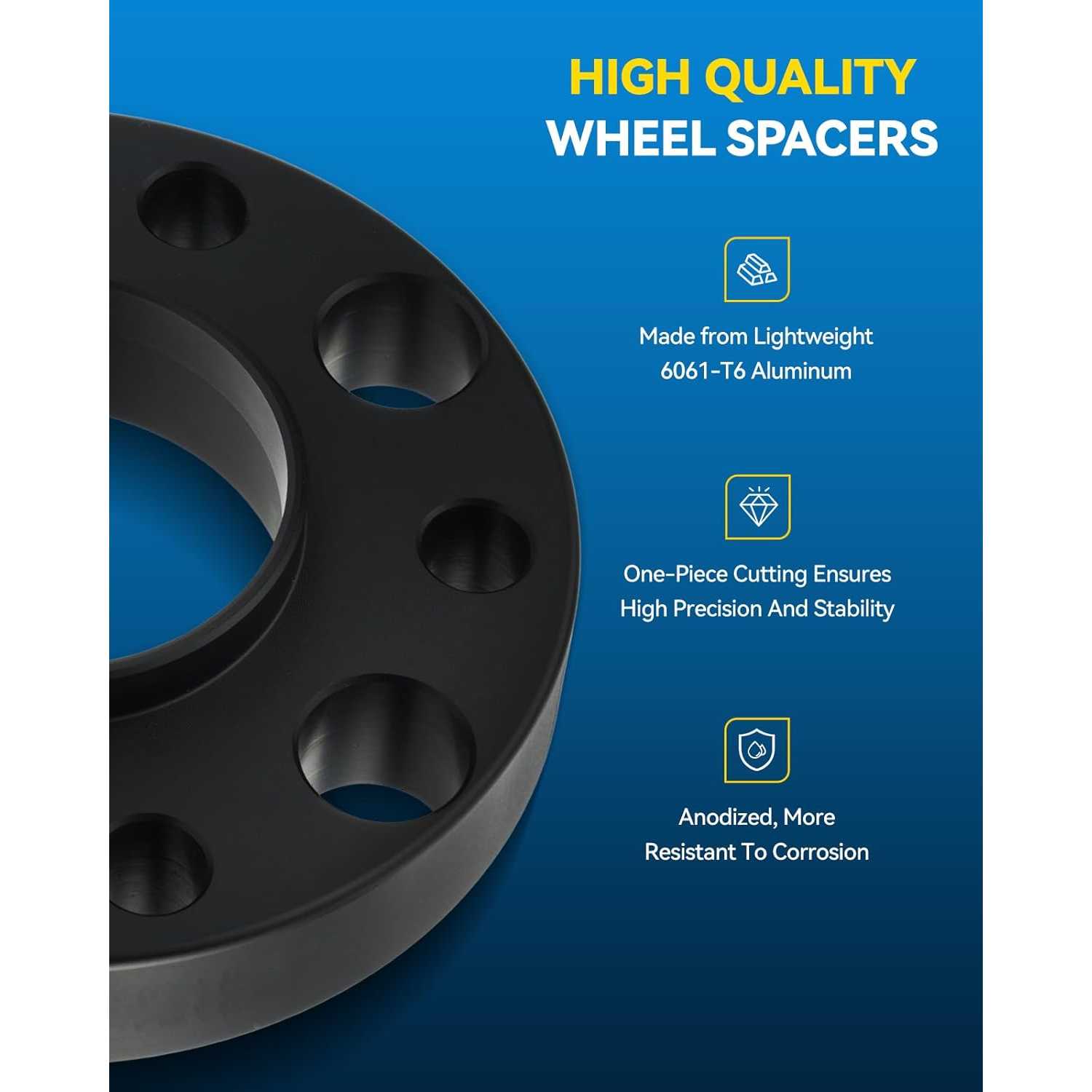 [Unsurpassed Quality] ---6x5.5 Wheel Spacer is truly forged from lightweight anodized 6061-T6 aircraft-grade aluminum alloy, the surface anodized coating can protect the metal surface from environmental erosion under extreme conditions. CNC precisely machined, with pre-installed heat treated 12.9 grade carbon steel studs, 7-10 times the corrosion resistance of similar products. The installation fit more better, so as to prevent wheel vibration and maintain the stock driving