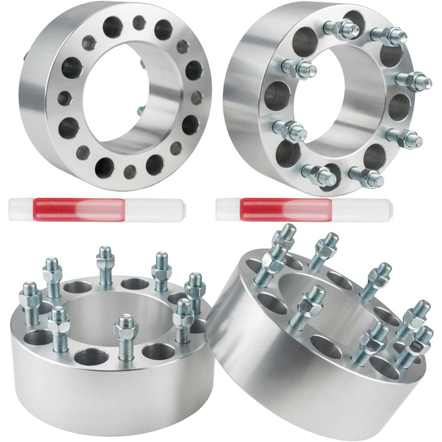[Wheel Spacers Specification] --- Bolt Pattern: 8x170mm(8x6.69") ; | Thickness: 3 inch(76.2mm) ; | Thread Pitch: M14x2 ; | Hub Bore: 125mm ; | Recommended torque: 85-90 ft/lbs. !!! Note: If the length of the vehicle bolts exceed the thickness of the wheel adapters, you need to cut the vehicle bolts