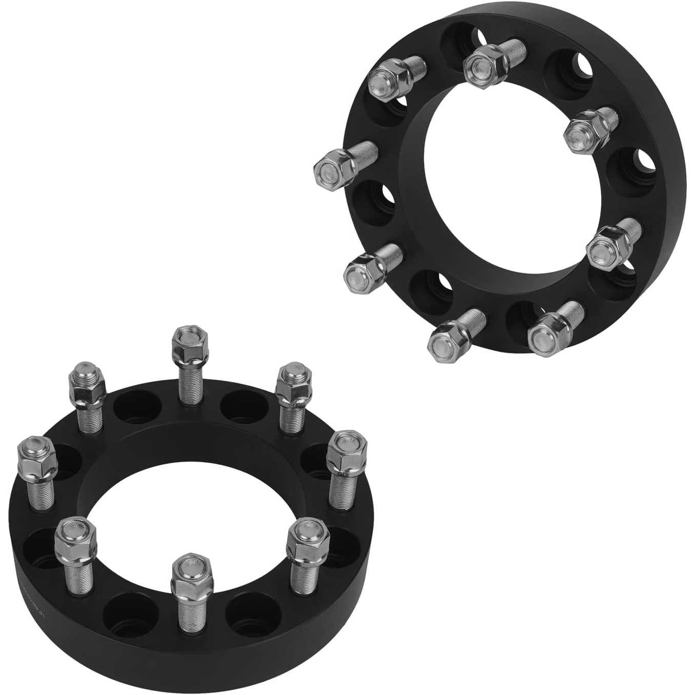 • [Wheel Spacers Specification] --- Bolt Pattern: 8x6.5"(8x165.1mm) ; | Thickness: 1.5 inch(38mm) ; | Thread Pitch: 9/16"x18 ; | Hub Bore: 126.15mm ; | Recommended torque: 135-145 ft/lbs. !!! Note: If the length of the vehicle bolts exceed the thickness of the wheel adapters, you need to cut the vehicle bolts