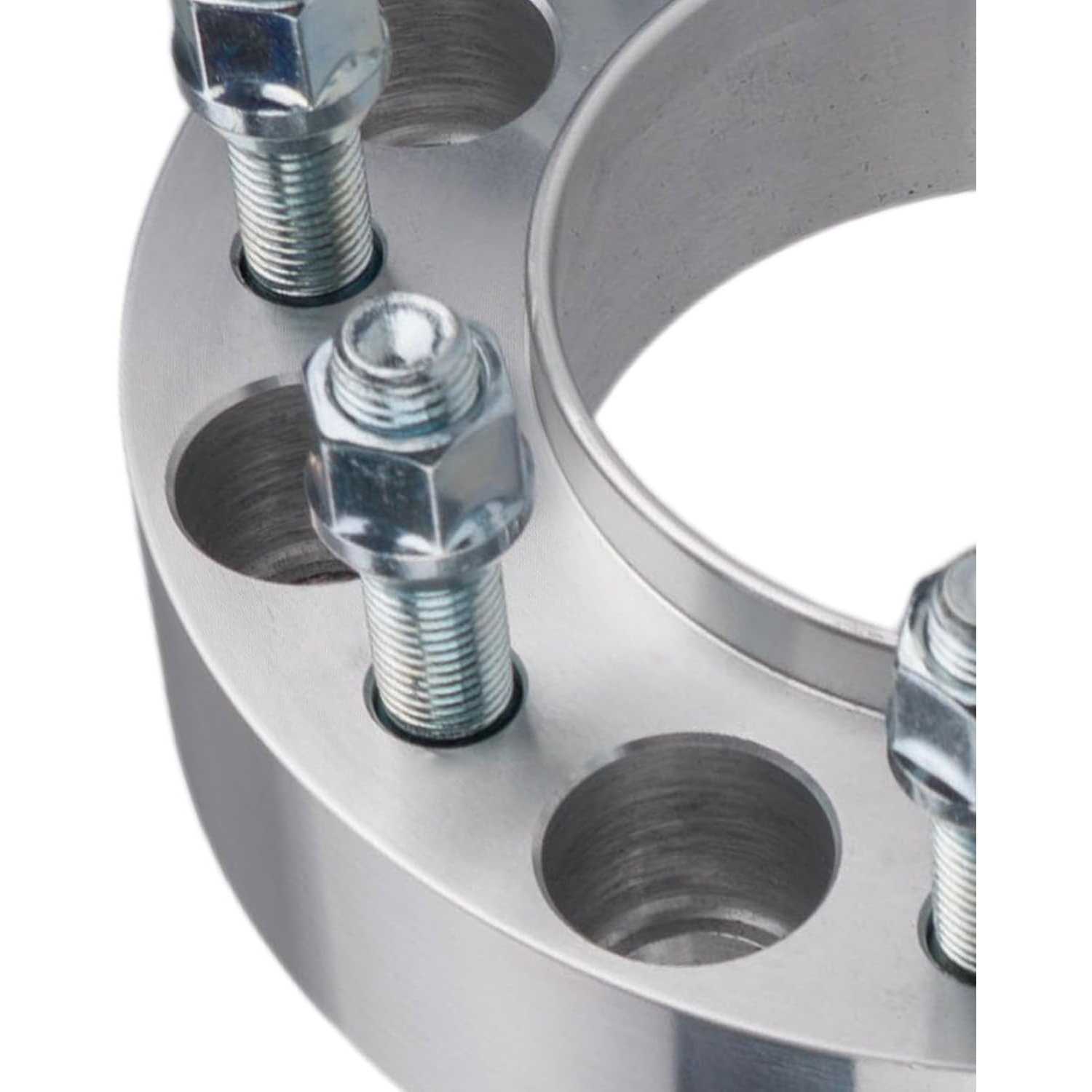 [Wheel Spacers Specification] --- Bolt Pattern: 8x6.5"(8x165.1mm) ; | Thickness: 1.5 inch(38mm) ; | Thread Pitch: M14x1.5 ; | Hub Bore: 117mm ; | Recommended torque: 85-90 ft/lbs. !!! Note: If the length of the vehicle bolts exceed the thickness of the wheel adapters, you need to cut the vehicle bolts