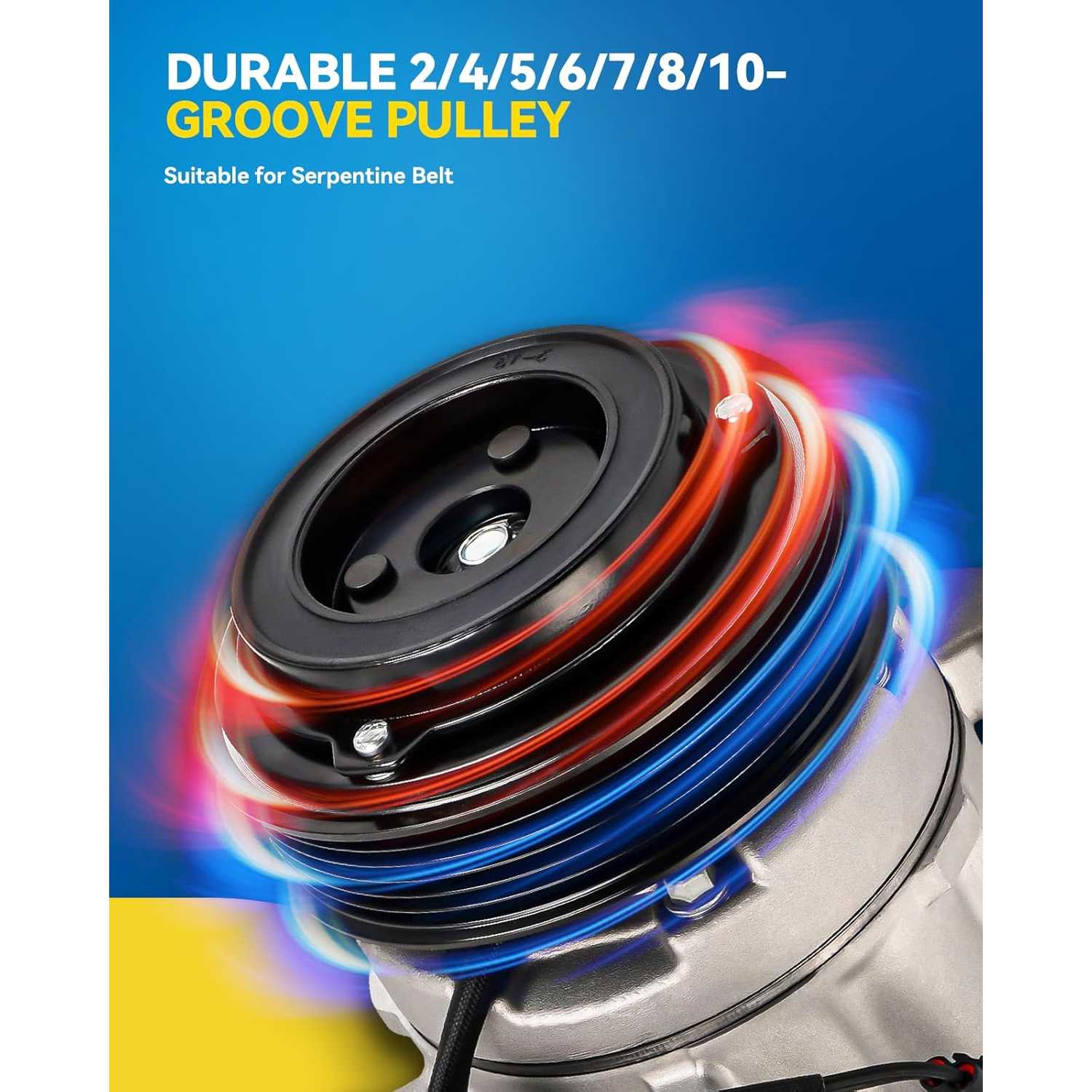 Ensures Fast Refrigeration And Defogging: ①Oil Type:-;②R-efrigerant Type:R-134a or R1234yf;③Pulley Grooves: 6;④Pulley Diameter:5.31 inch ;⑤Compressor type:A10HF20;⑥Pulley type:Multi-Groove Serpentine;⑦Clutch Included: Yes; ⑧Noise:<72 dB.Our air conditioning compressor supply Stable and Consistent Cooling, It ensures stable and consistent cooling throughout your drive.