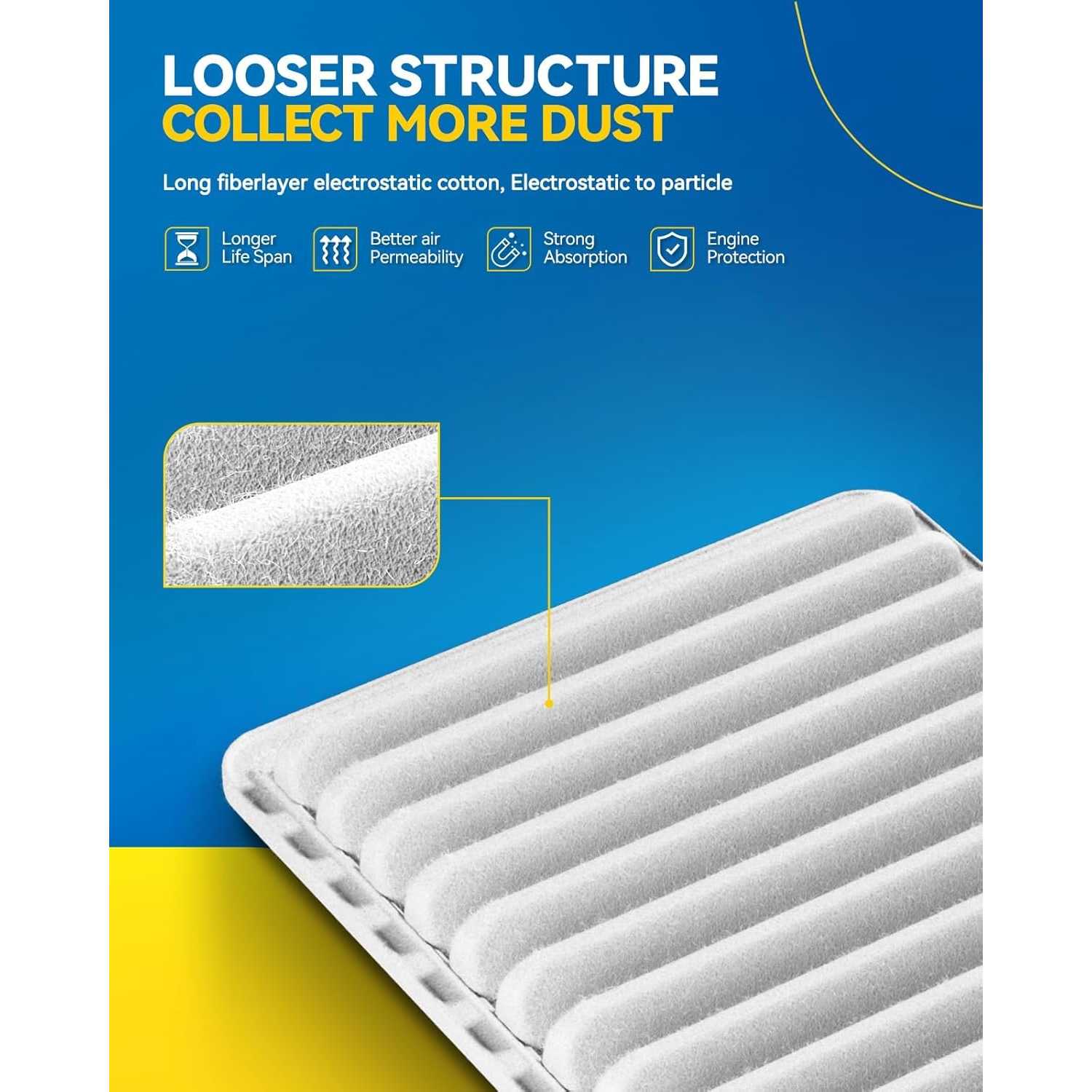 Improves air flow and prevents dirt and dust from entering the engine