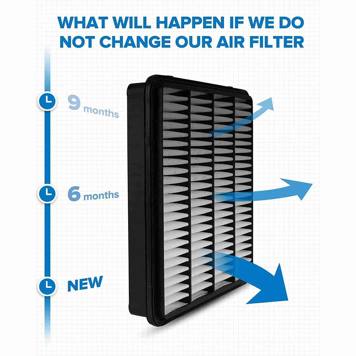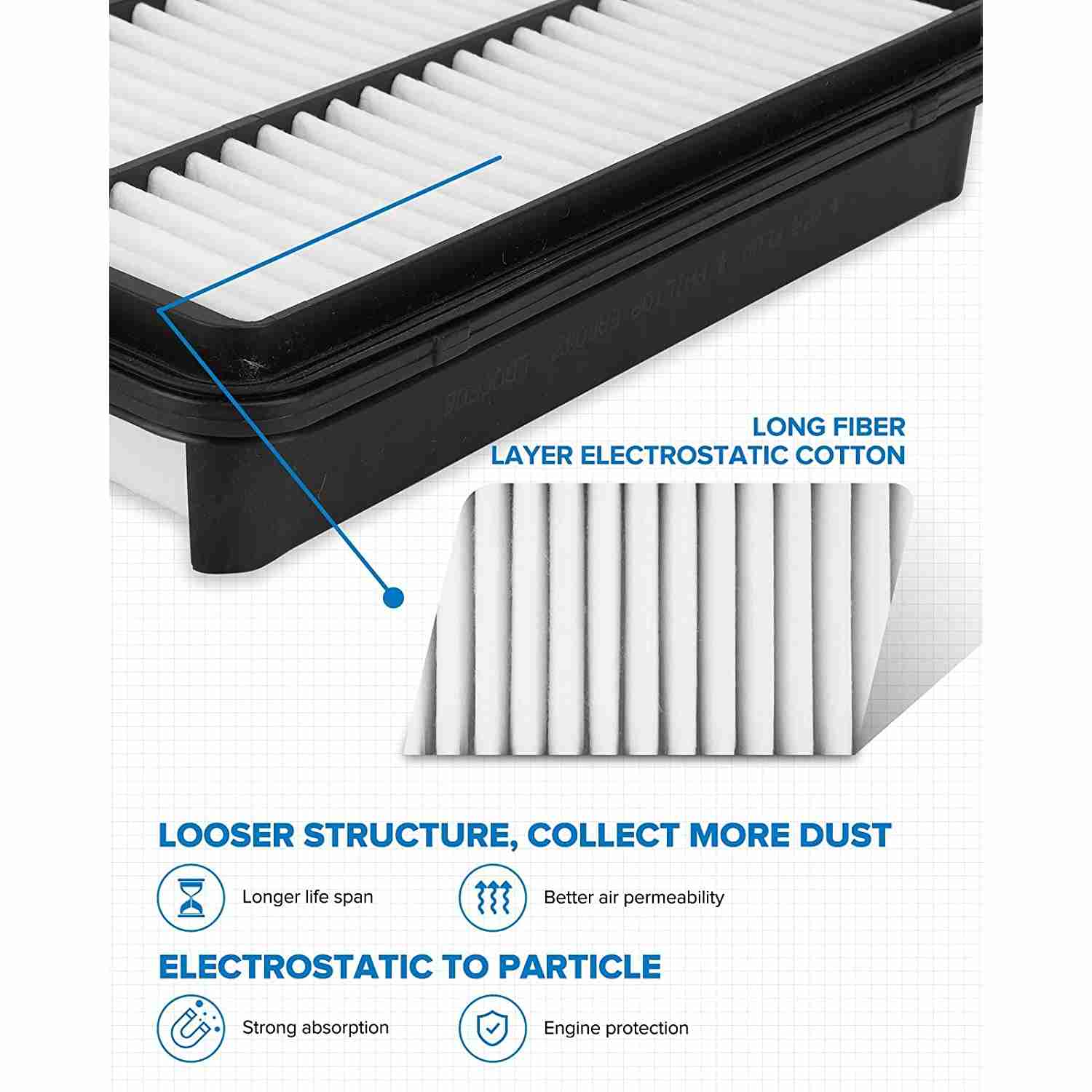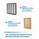 Prevents drop in acceleration and power, improves airflow and prevents dirt and dust from entering the engine