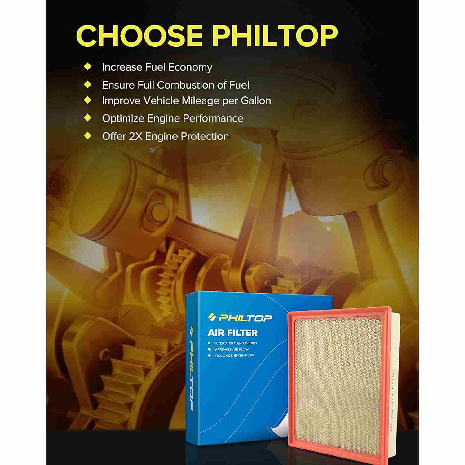 • 98% filtration efficiency: PHILTOP engine air filter is made of high-density synthetic polyester fiber, which can filter out various impurities, hair, fines, dust, and flocs, and provide sufficient clean air for your engine, ensure full combustion of fuel, increase mileage per gallon, and optimize engine performance