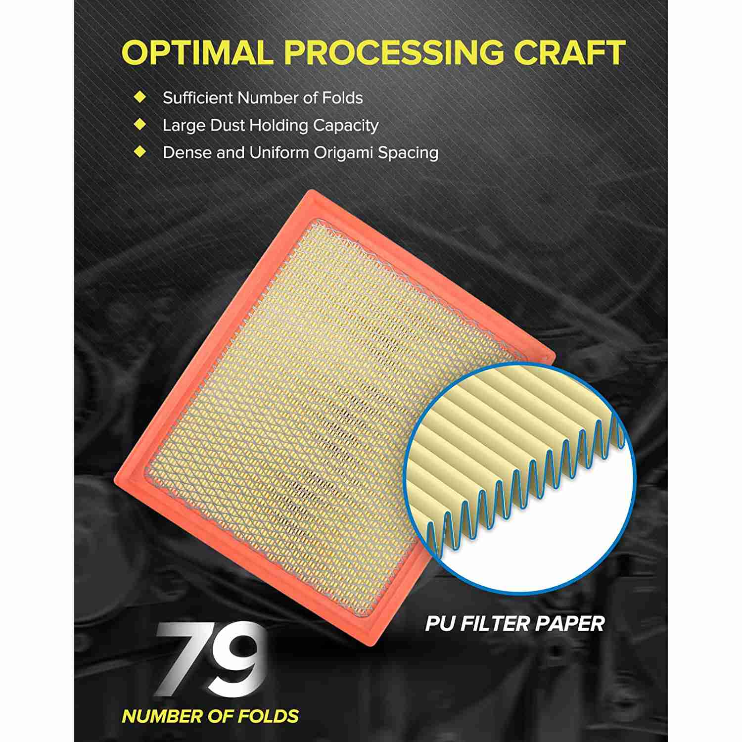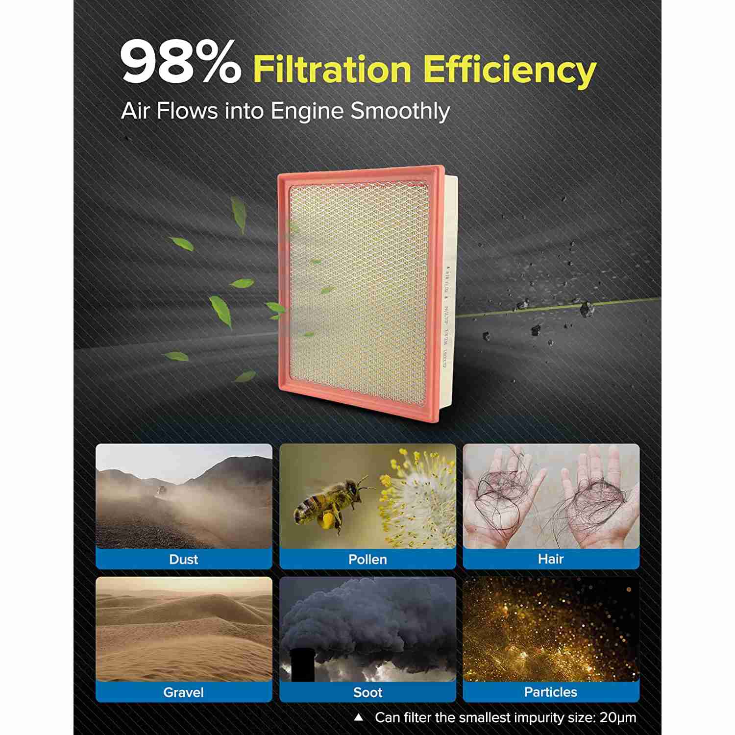 • 10min installation: This engine filter adopts the standard processes of OE parts, and the size precisely suits the housing; it can be directly installed by yourself, without special tools, and no need go to the dealership, which can save you a lot of time and cost