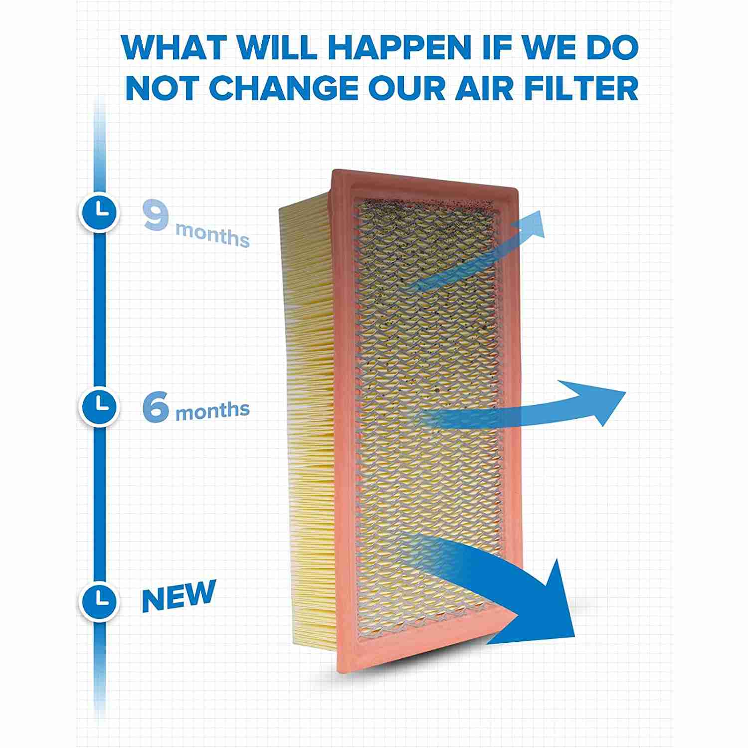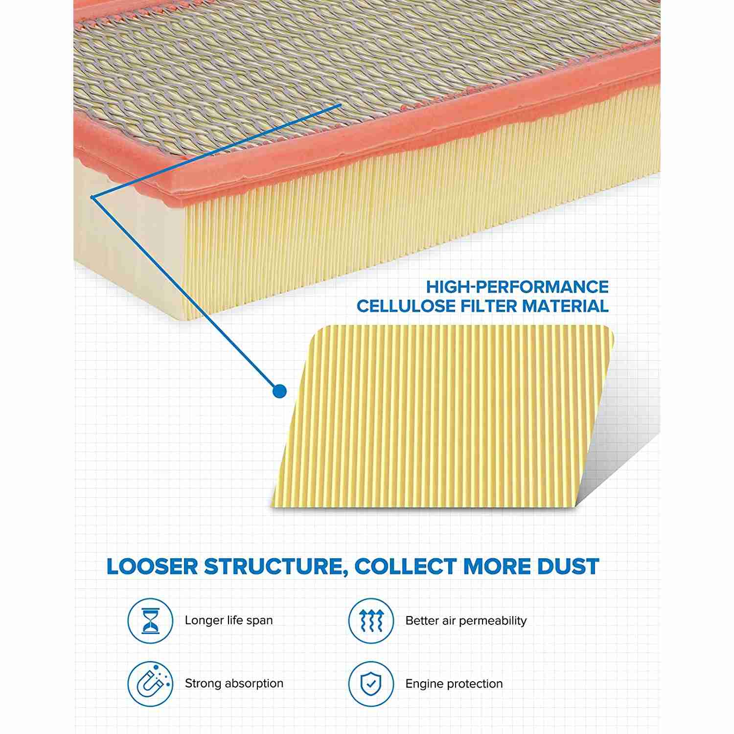 Prevents drop in acceleration and power, improves airflow and prevents dirt and dust from entering the engine