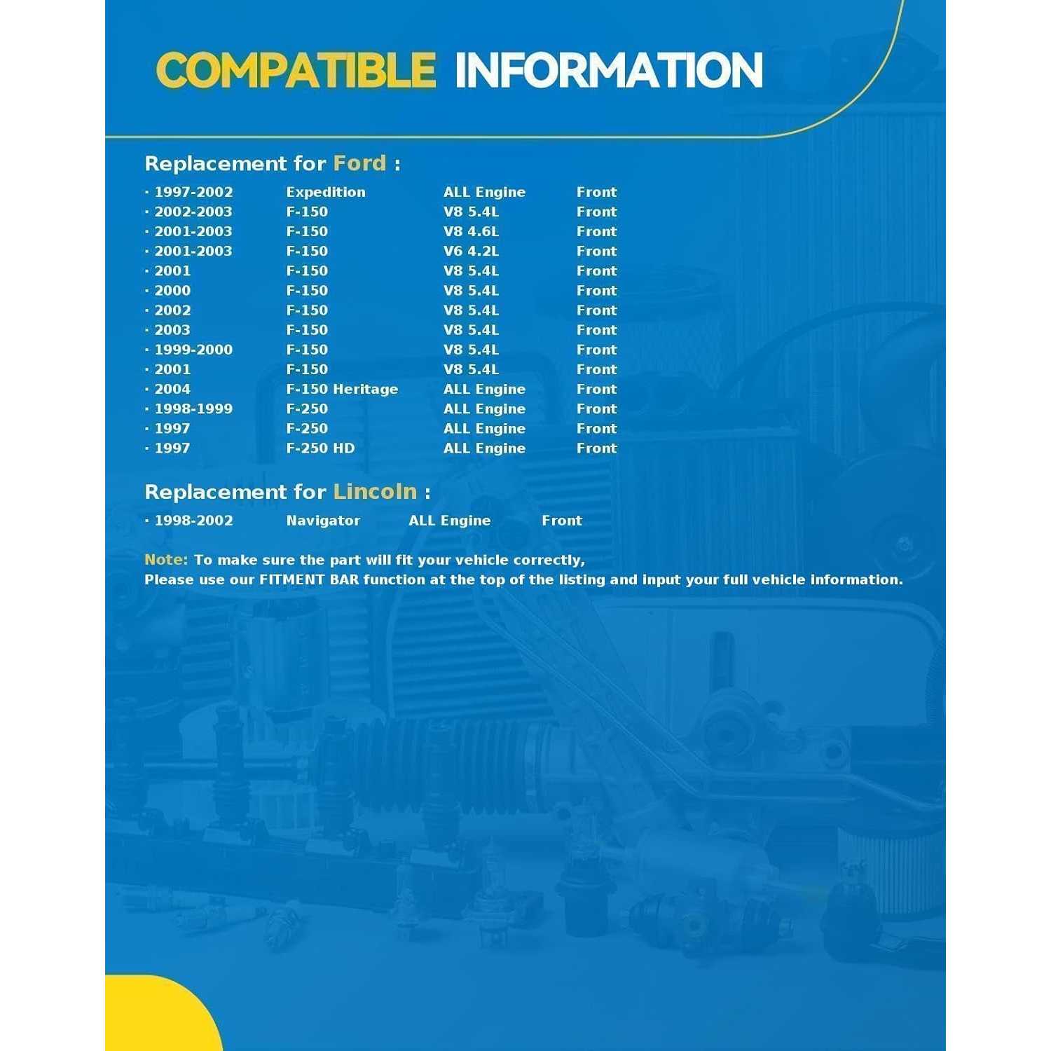 Precision Fit ford & Lincoln Trucks and SUVs: This front ceramic brake pad set is engineered as a direct OE replacement ford F-150 (1999-2004), Ford Expedition (1997-2002), and Lincoln Navigator (1998-2002). Ensures proper fitment and seamless integration with your vehicle's braking system.