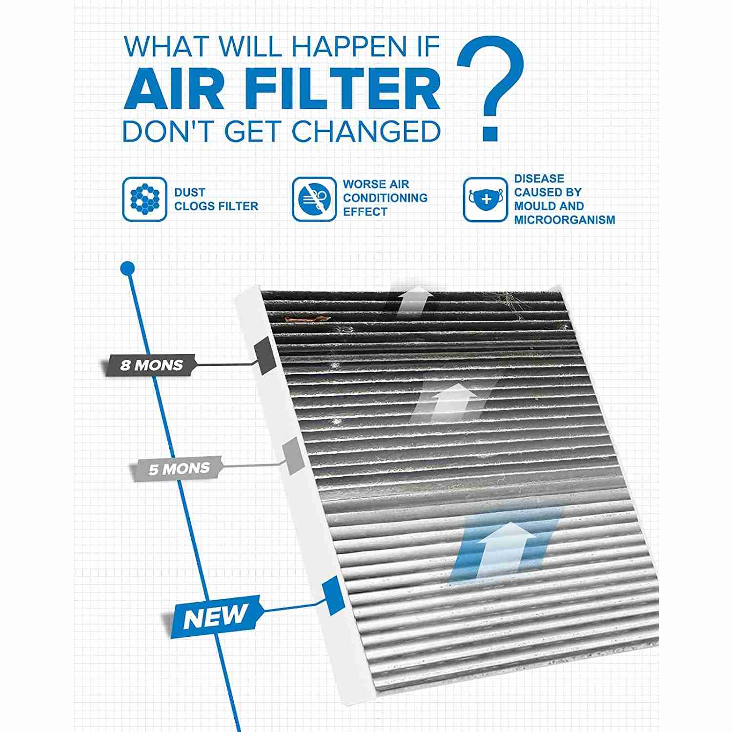 Easy to install, absorbs odors, filters dust, increases airflow