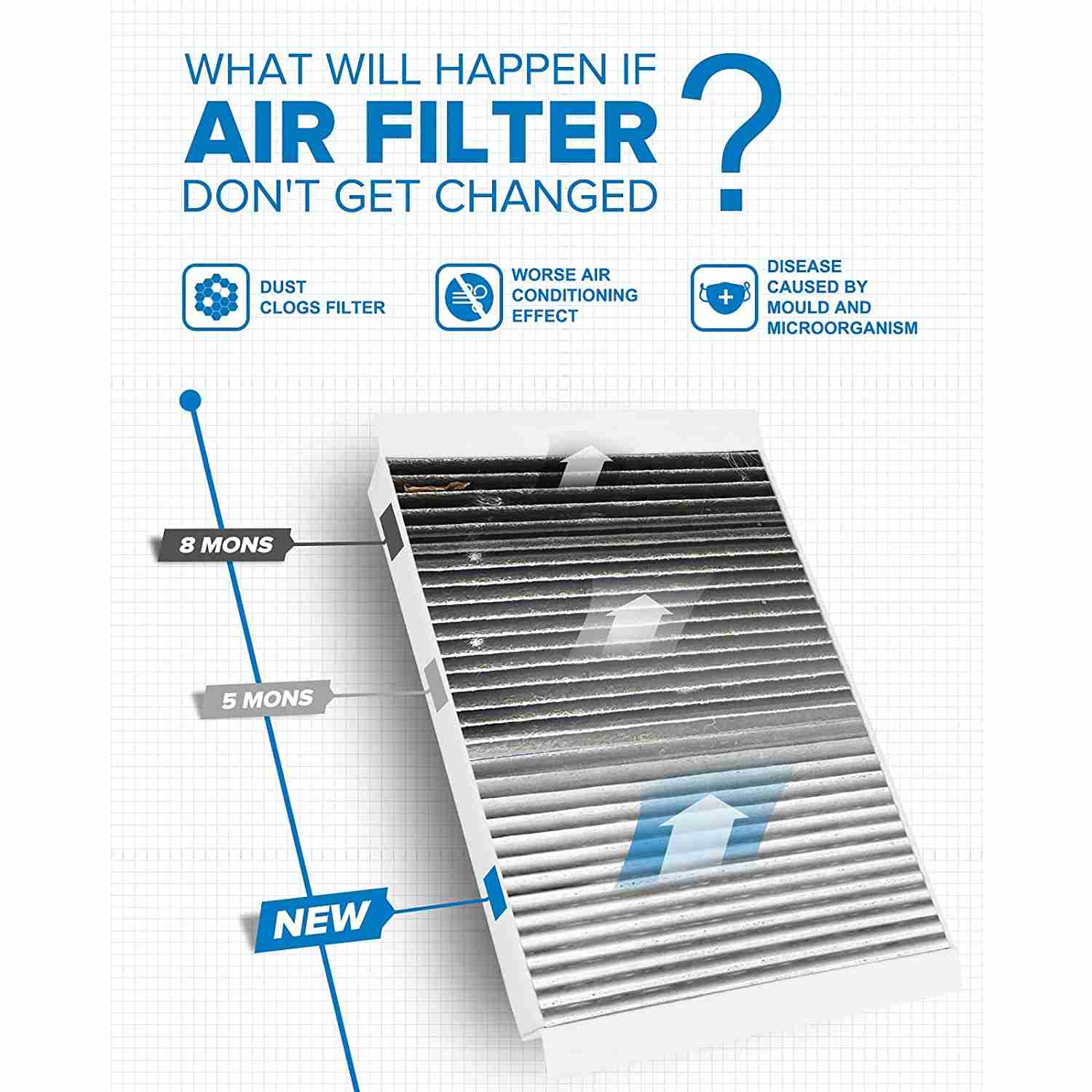 Easy to install, absorbs odors, filters dust, increases airflow