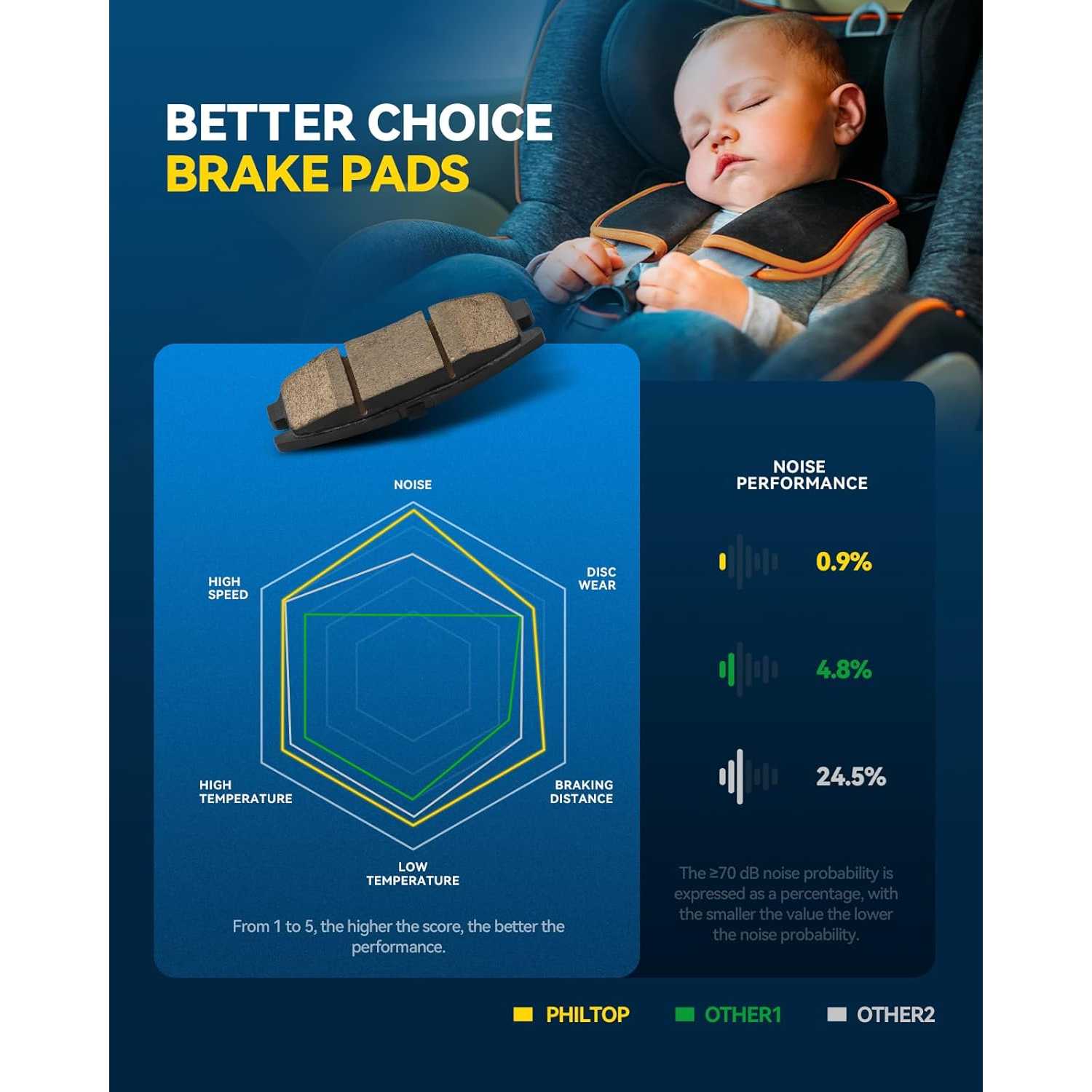 Durable Material and Longevity: Our brake pads are made of ceramic materials, which can offer outstanding durability. They are built to withstand the rigors of daily driving and heavy use, providing a longer service life compared to conventional brake pads, which means fewer replacements and cost savings for you.