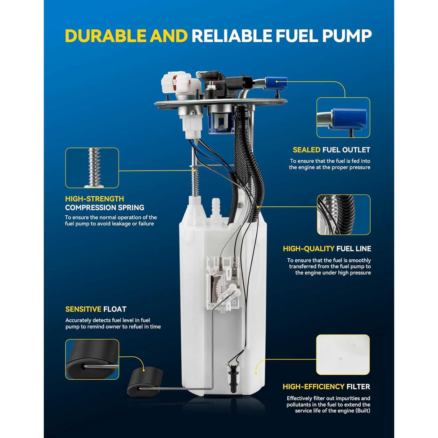20% Improved Fuel Delivery Efficiency: The commutator is made of carbon material, achieving an all-round performance leap compared with traditional copper commutators; it features superior electrical performance, shorter arc duration, stable current transmission, reduced motor energy consumption, and enhanced fuel delivery efficiency.