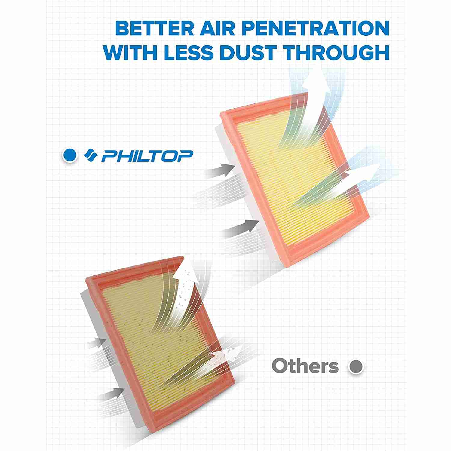 PHILTOP Engine Air Filter, As OEM replacement Panel Engine Air Filter, Protect Engine & Improves Acceleration, easy to install. If you are not sure about the fitment, please confirm with us before purchasing.