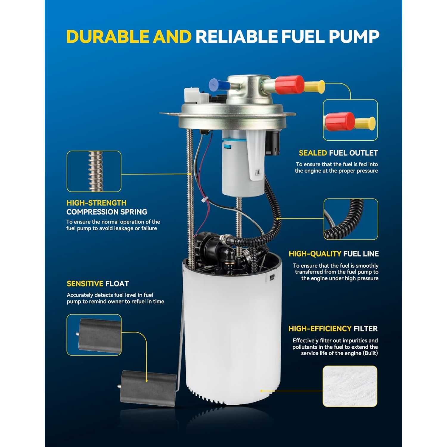 20% Improved Fuel Delivery Efficiency: The commutator is made of carbon material, achieving an all-round performance leap compared with traditional copper commutators; it features superior electrical performance, shorter arc duration, stable current transmission, reduced motor energy consumption, and enhanced fuel delivery efficiency.