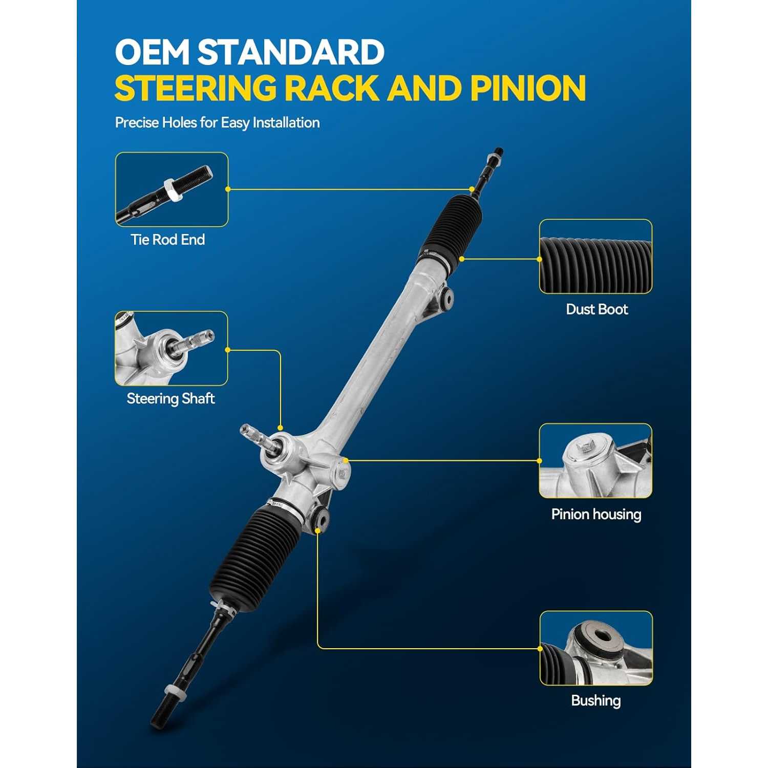 [High Verticality]: The rack and worm gear in the steering rack and pinion are made of high-strength alloy steel processed by high-precision CNC, which ensures the high verticality of the helical gear system, making the steering wheel operation more stable and driving safer. Closely integrated with the vehicle chassis will not produce noise and vibration.