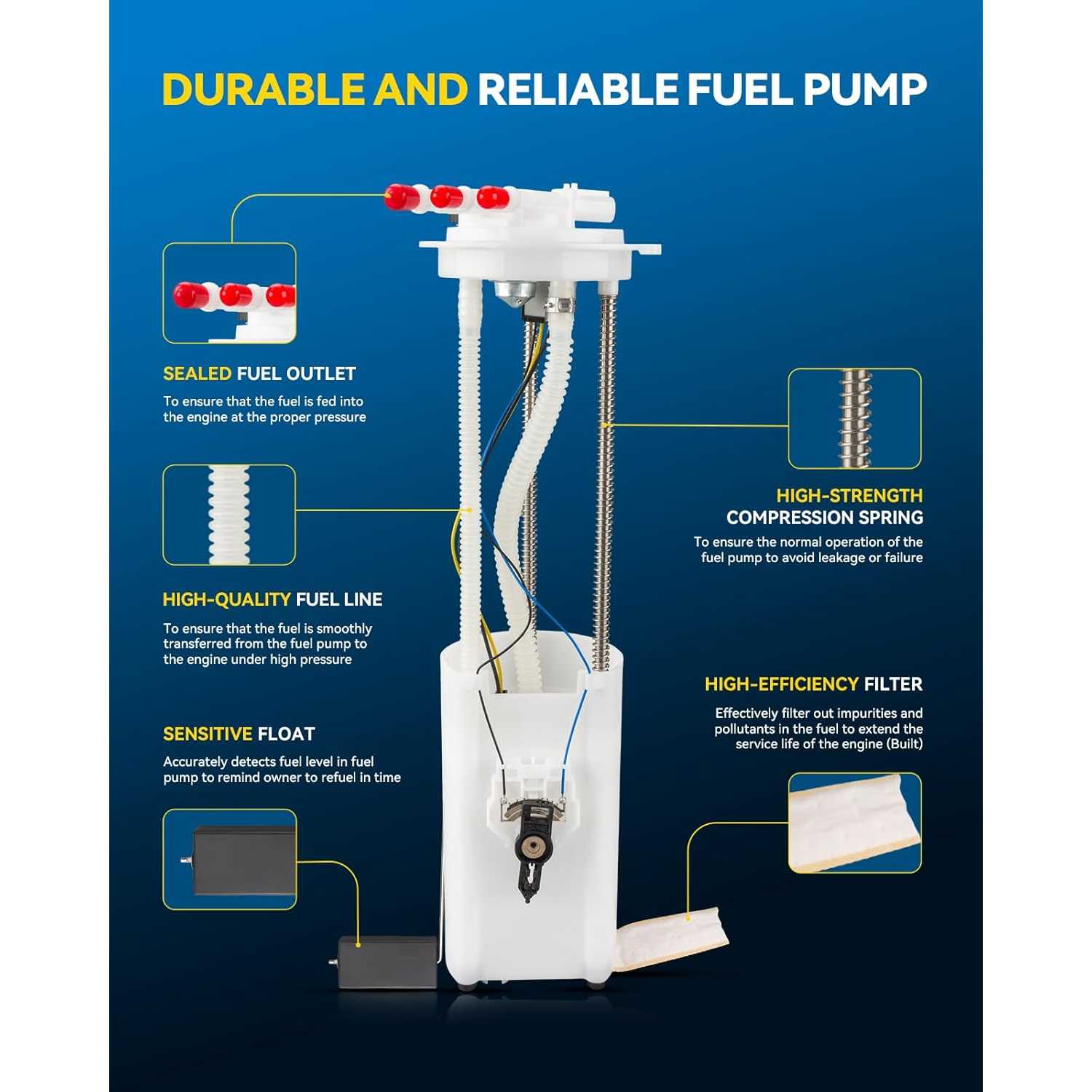 20% Improved Fuel Delivery Efficiency: The commutator is made of carbon material, achieving an all-round performance leap compared with traditional copper commutators; it features superior electrical performance, shorter arc duration, stable current transmission, reduced motor energy consumption, and enhanced fuel delivery efficiency.