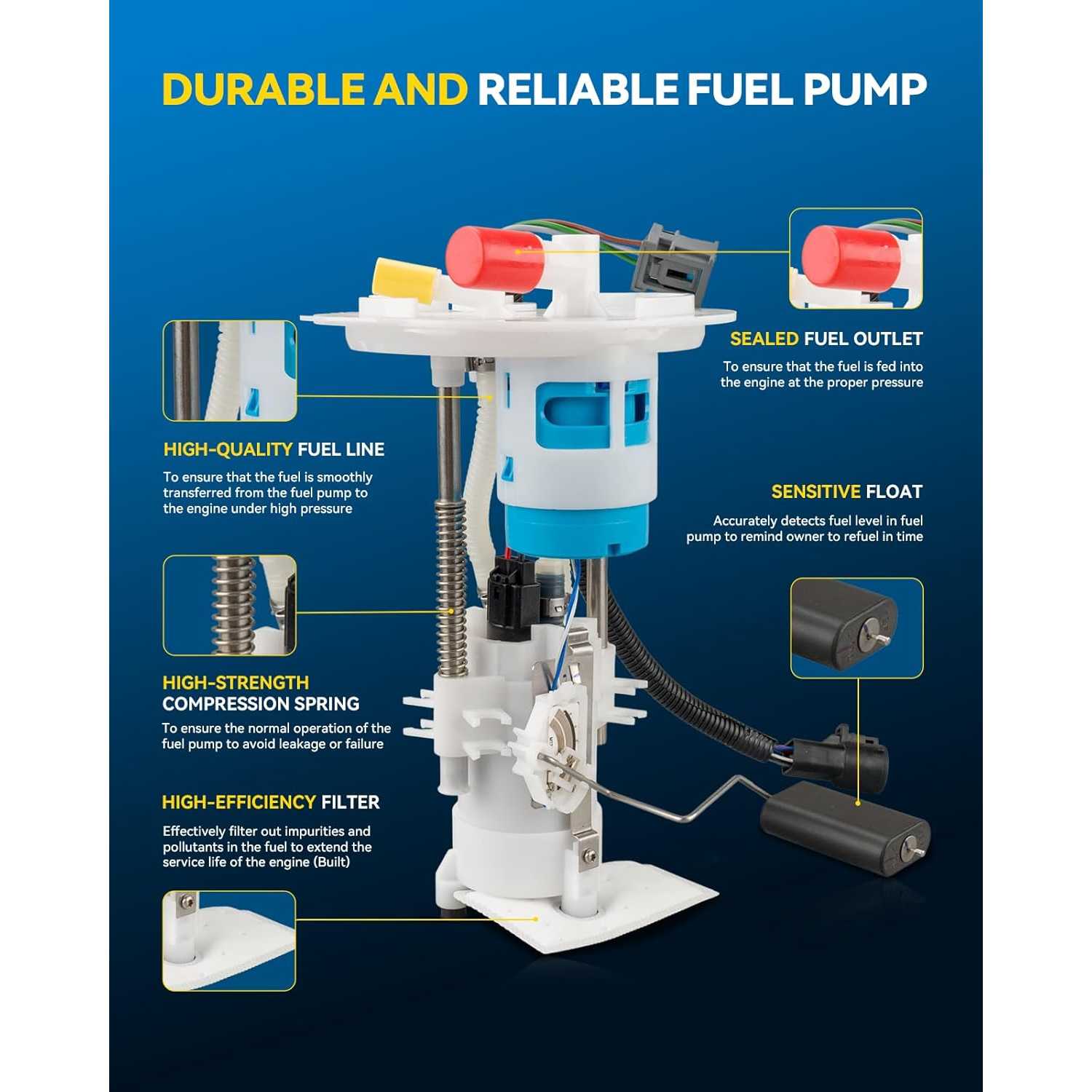 20% Improved Fuel Delivery Efficiency: The commutator is made of carbon material, achieving an all-round performance leap compared with traditional copper commutators; it features superior electrical performance, shorter arc duration, stable current transmission, reduced motor energy consumption, and enhanced fuel delivery efficiency.