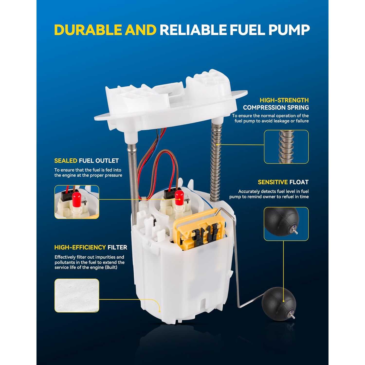 20% Improved Fuel Delivery Efficiency: The commutator is made of carbon material, achieving an all-round performance leap compared with traditional copper commutators; it features superior electrical performance, shorter arc duration, stable current transmission, reduced motor energy consumption, and enhanced fuel delivery efficiency.