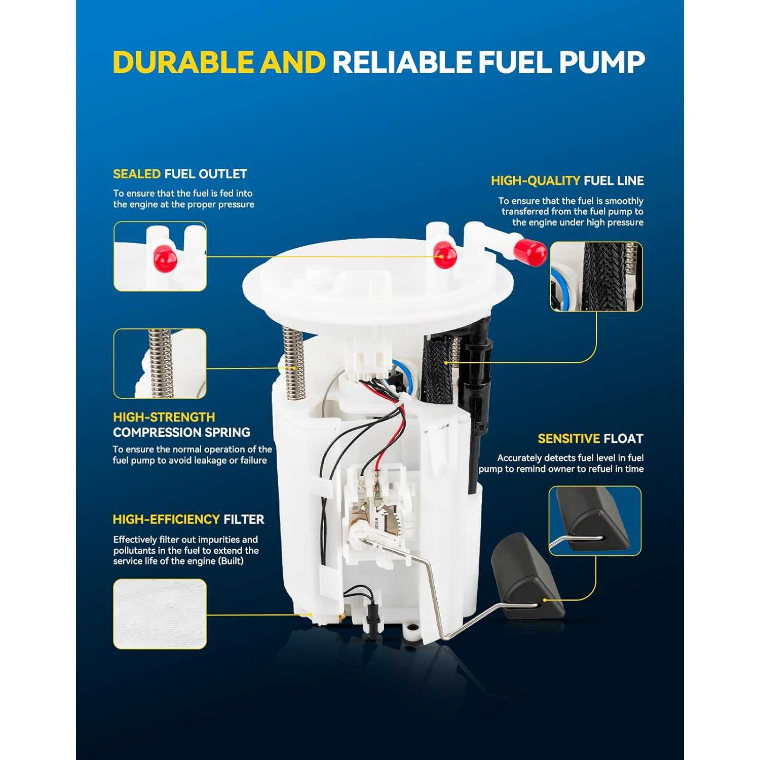 20% Improved Fuel Delivery Efficiency: The commutator is made of carbon material, achieving an all-round performance leap compared with traditional copper commutators; it features superior electrical performance, shorter arc duration, stable current transmission, reduced motor energy consumption, and enhanced fuel delivery efficiency.