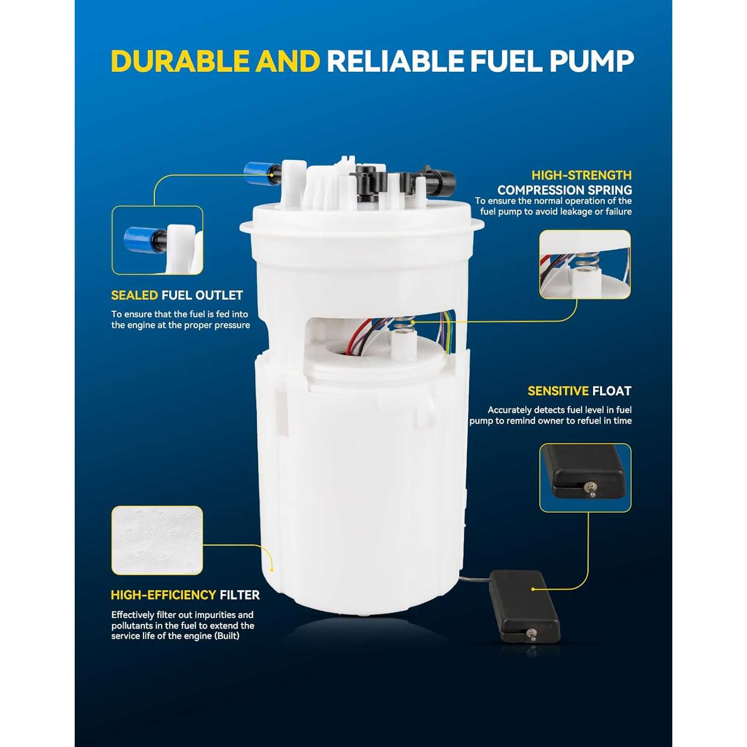 (Premium Quality & Service)--One year hassle-free return and exchange. All plastic parts are made of imported high performance POM raw materials, and the module adopts the most mature fuel pump structure, which is ethanol resistant, more efficient and longer service life.