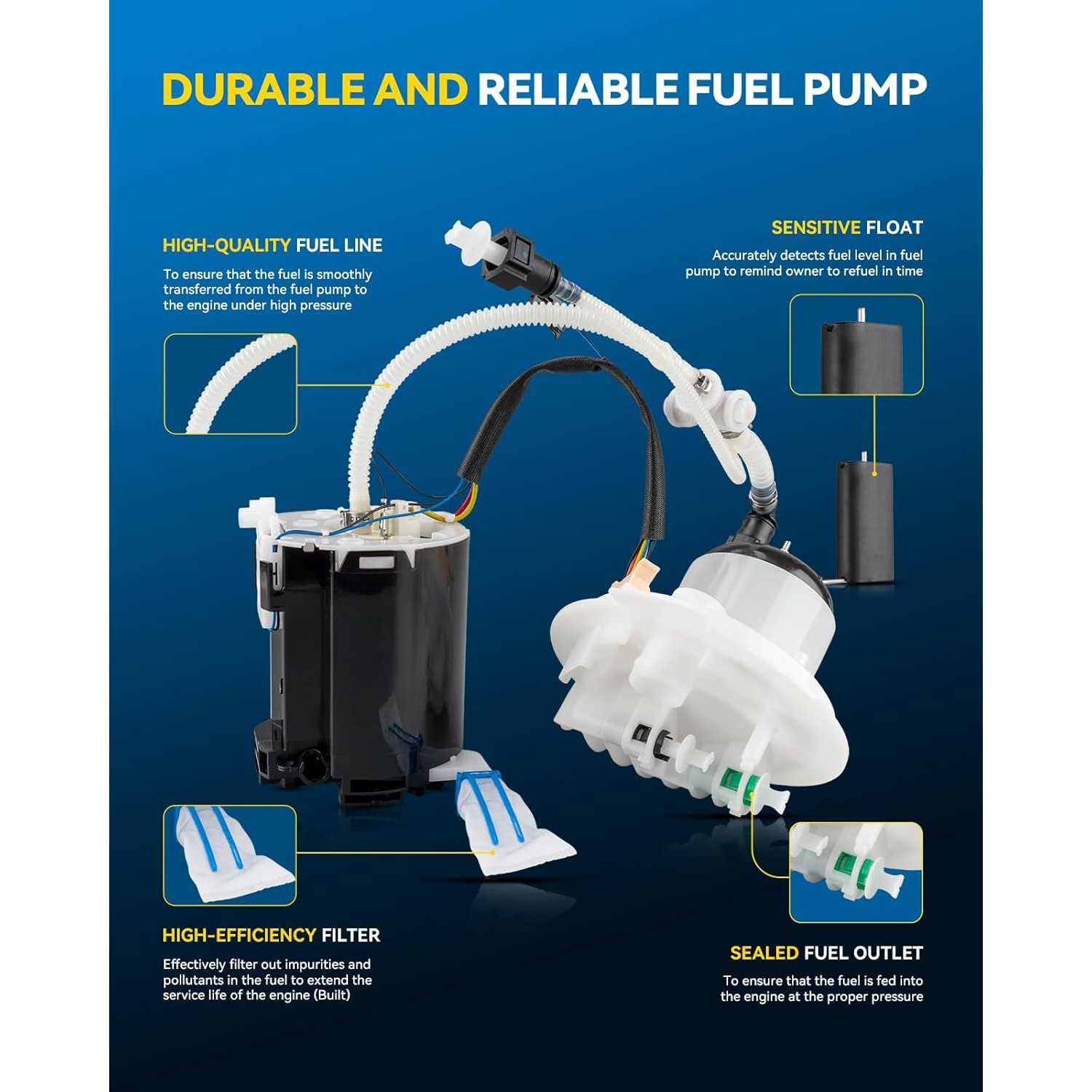 20% Improved Fuel Delivery Efficiency: The commutator is made of carbon material, achieving an all-round performance leap compared with traditional copper commutators; it features superior electrical performance, shorter arc duration, stable current transmission, reduced motor energy consumption, and enhanced fuel delivery efficiency.