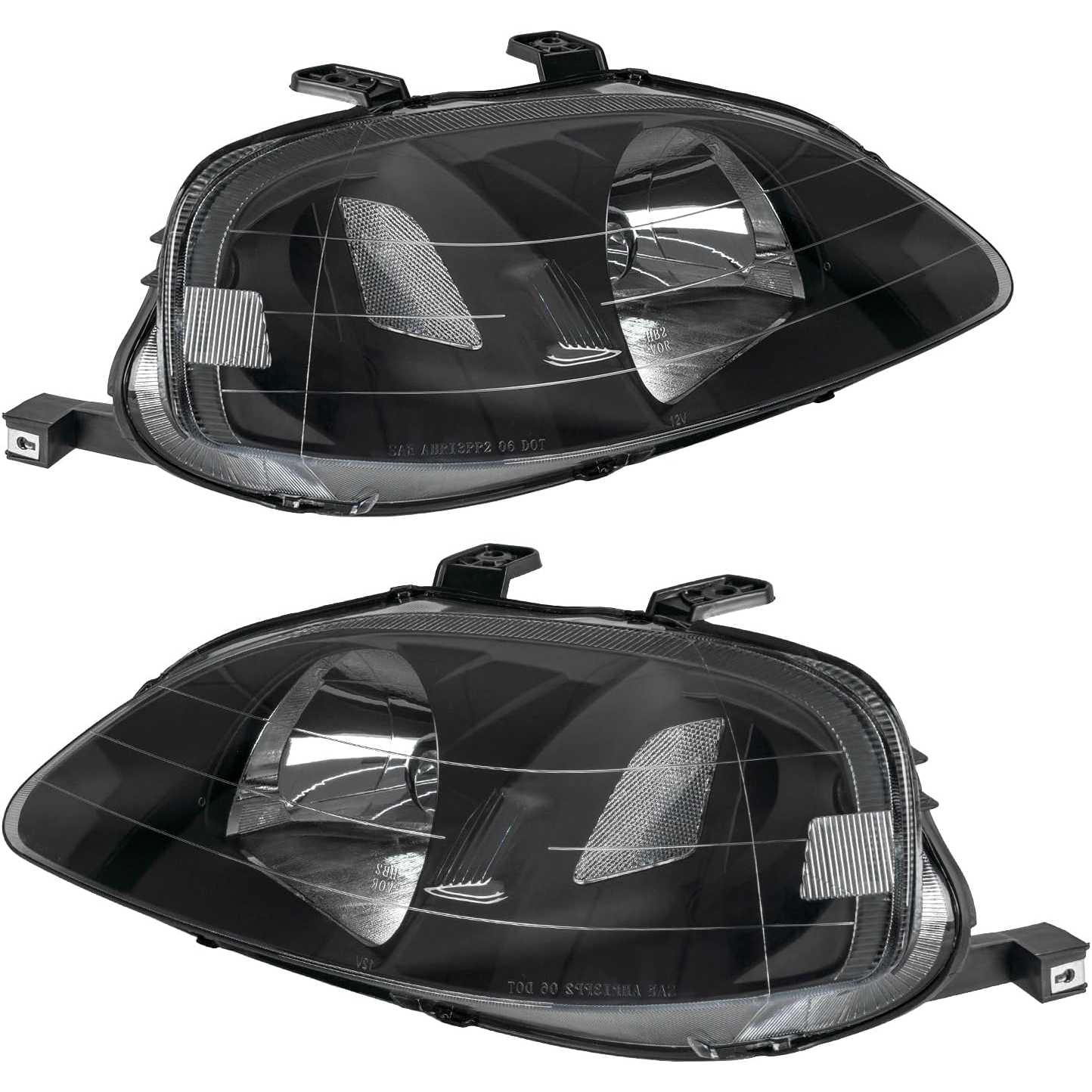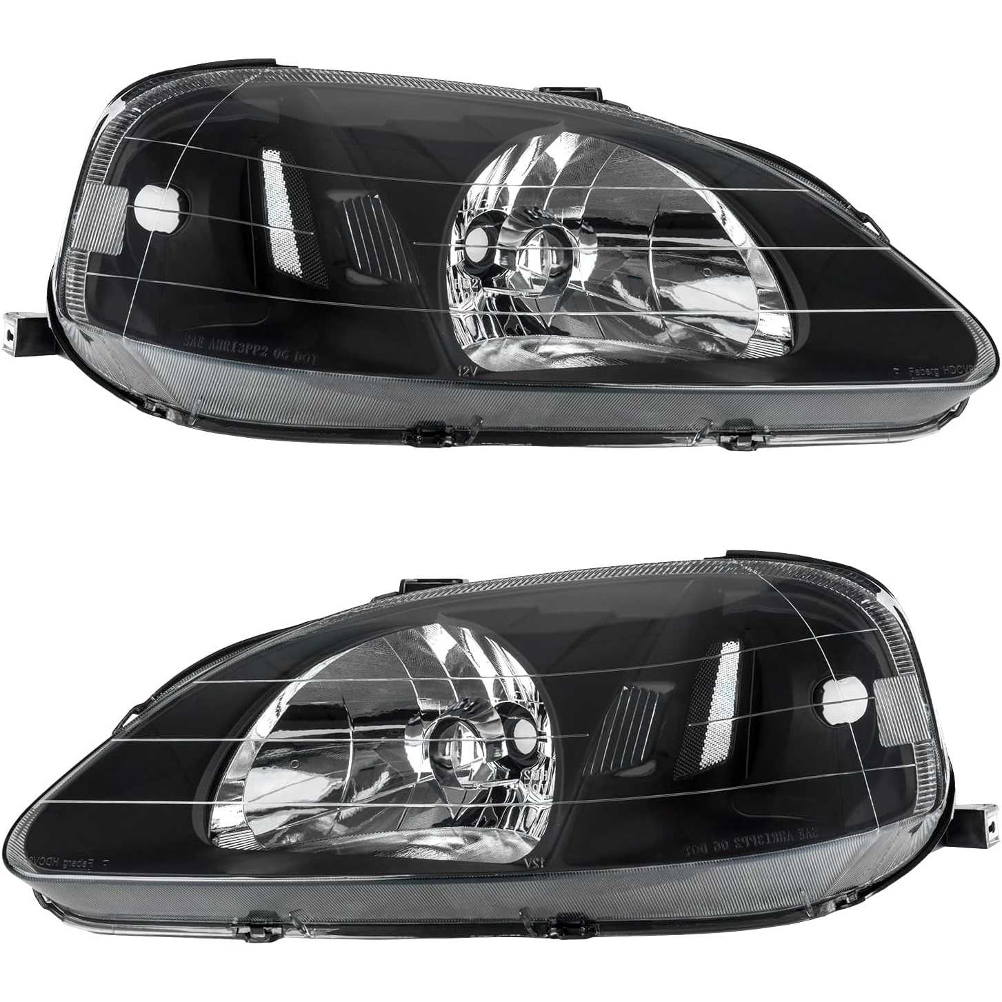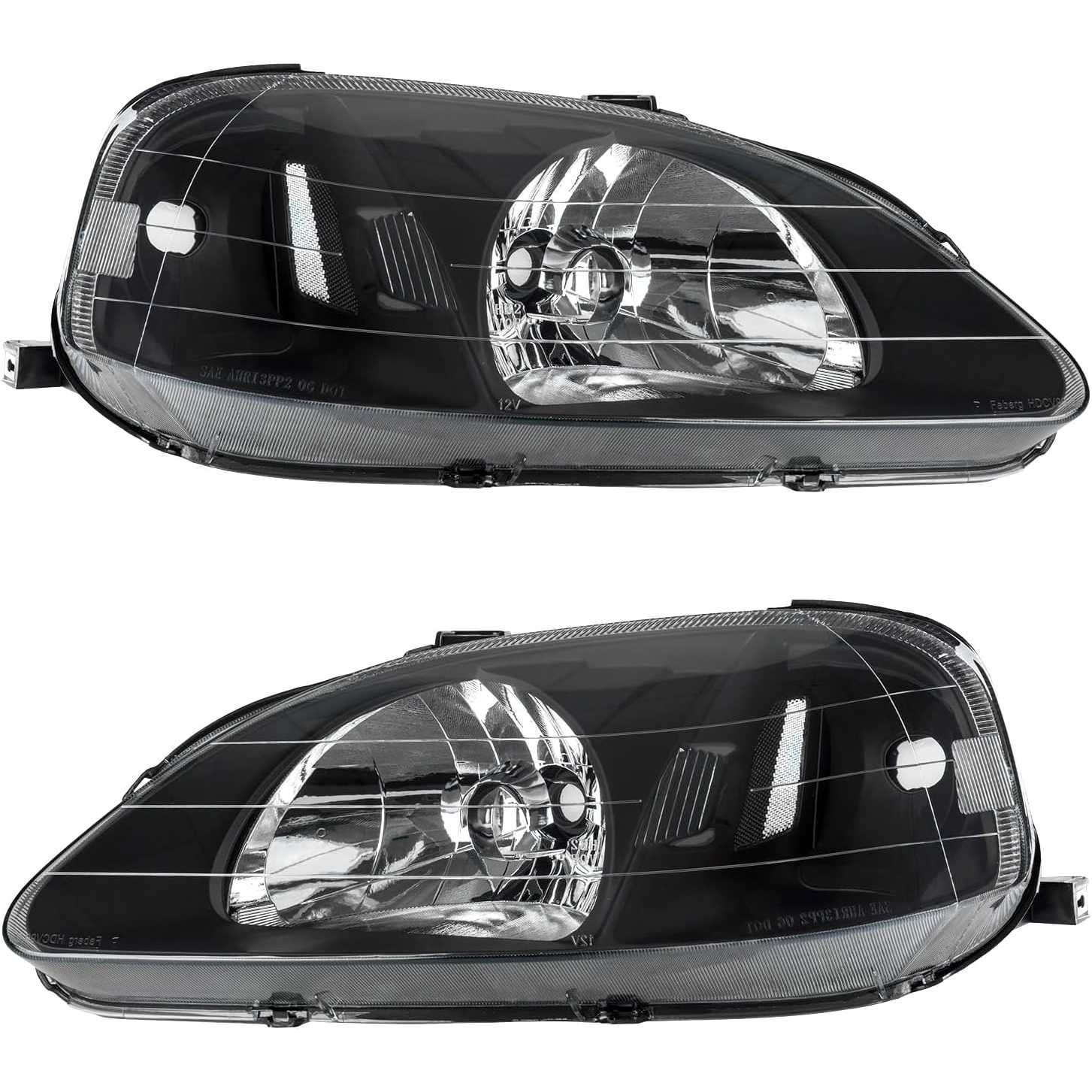 PHILTOP Front Headlights Assembly for Civic 1999-2000 1.6L, Headlamp for Black Housing Clear Lens Clear Reflector