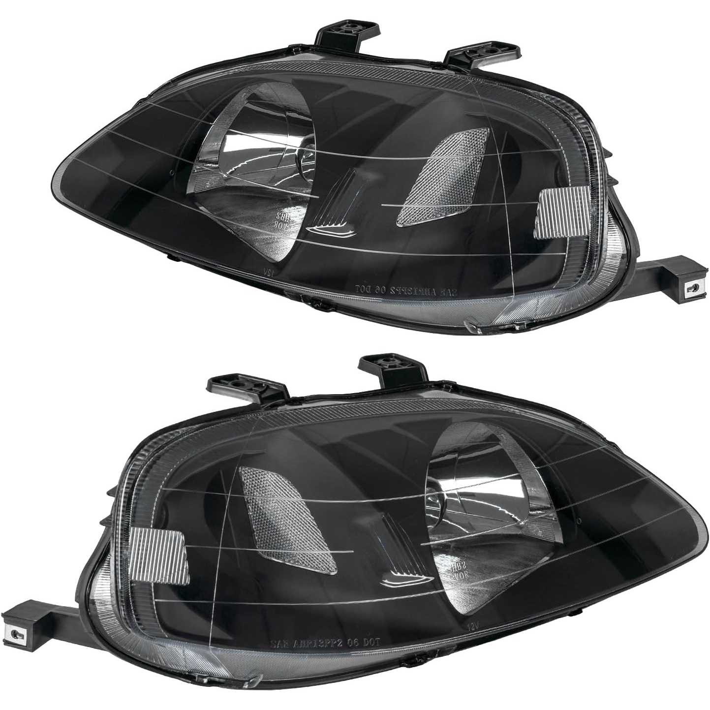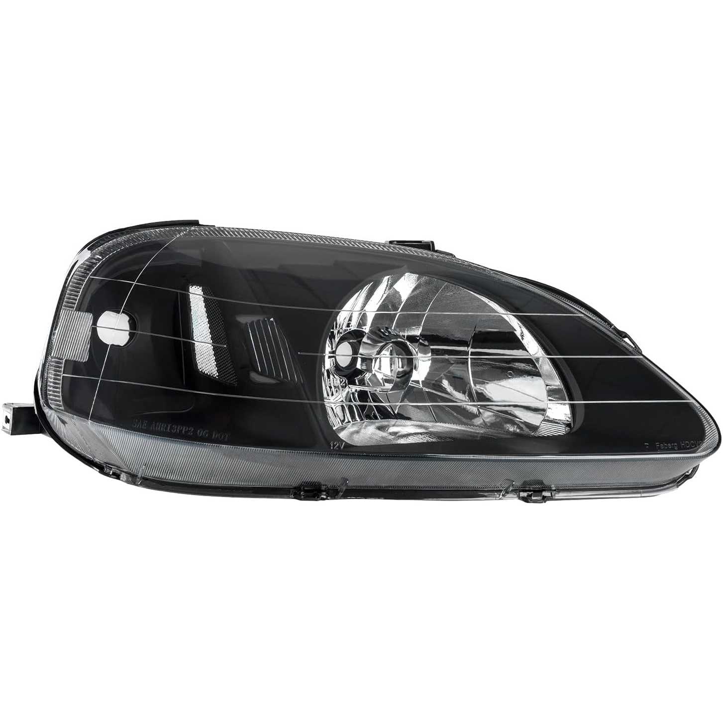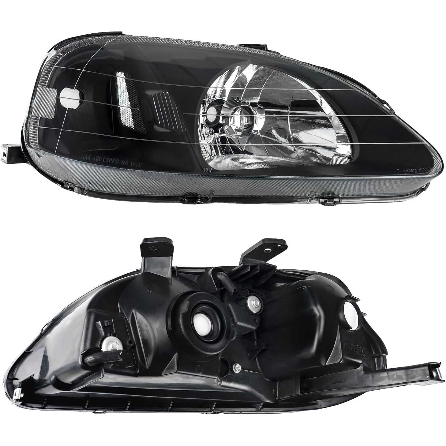PHILTOP Front Headlights Assembly for Civic 1999-2000 1.6L, Headlamp for Black Housing Clear Lens Clear Reflector