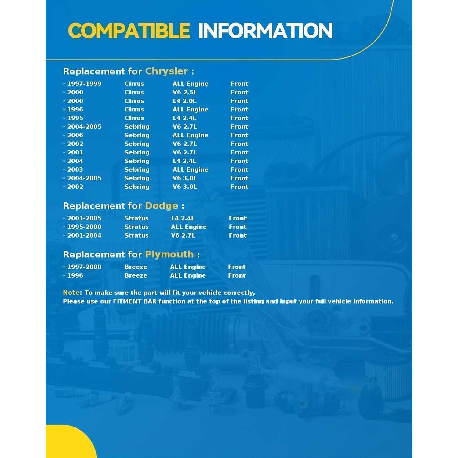Precision Fit for Chrysler, Dodge & Plymouth Models: This front brake rotor set is engineered as a direct OE replacement for Chrysler Sebring (2001-2006), Dodge Stratus (1995-2005), for Chrysler Cirrus (1995-2000), and Plymouth Breeze (1996-2000). Ensures proper fitment for your sedan.