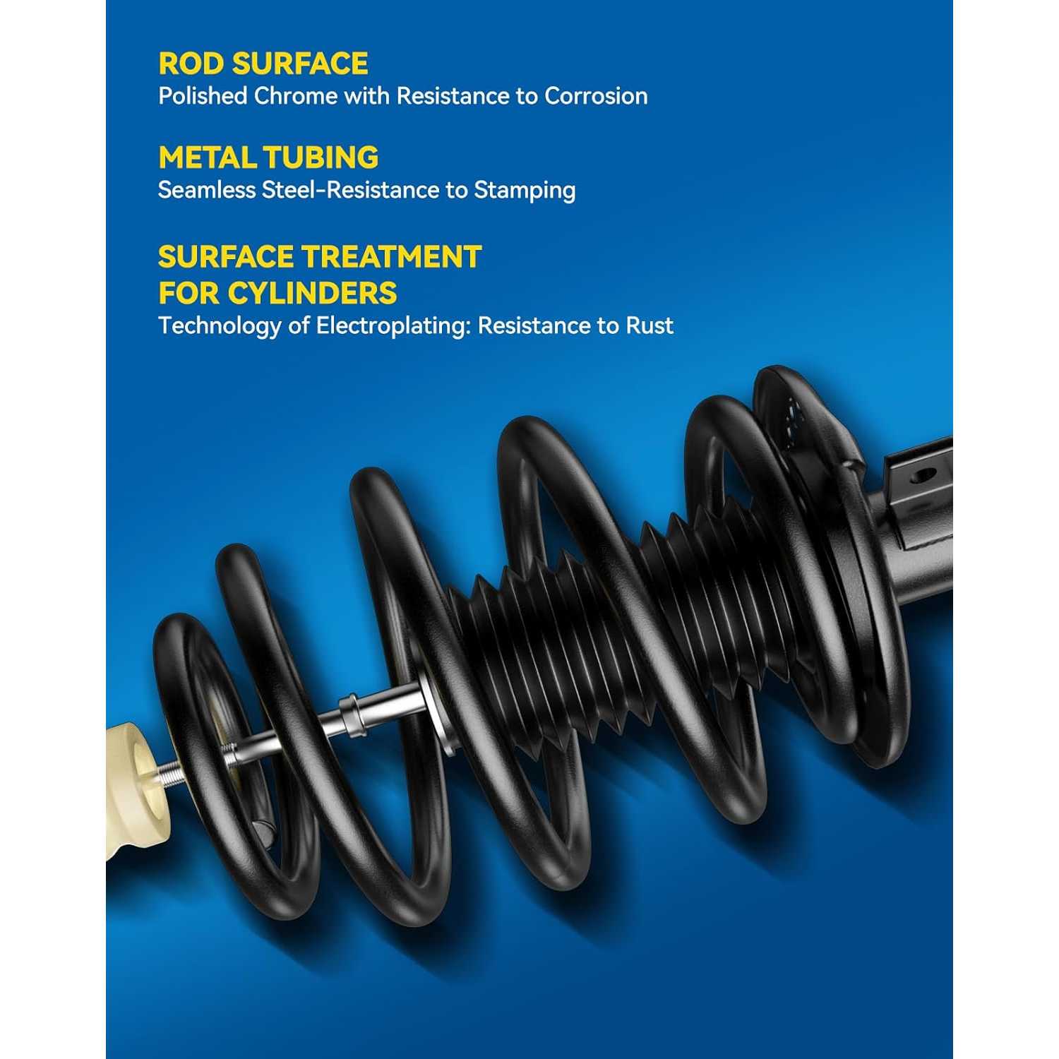 Outstanding Quality: Shock absorbers are designed with oil seals and rugged dust caps to protect against impact, leakage and distortion. High-quality steel construction ensures that each coil spring is precisely calibrated to meet OE specifications for added durability.